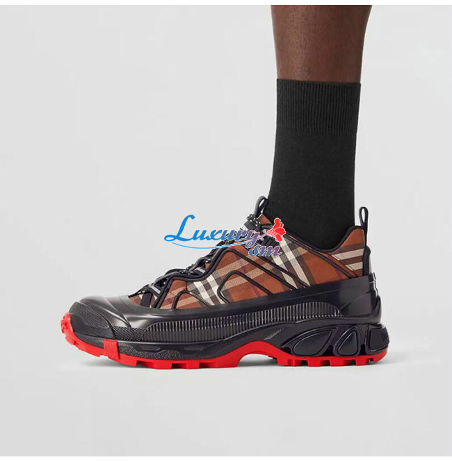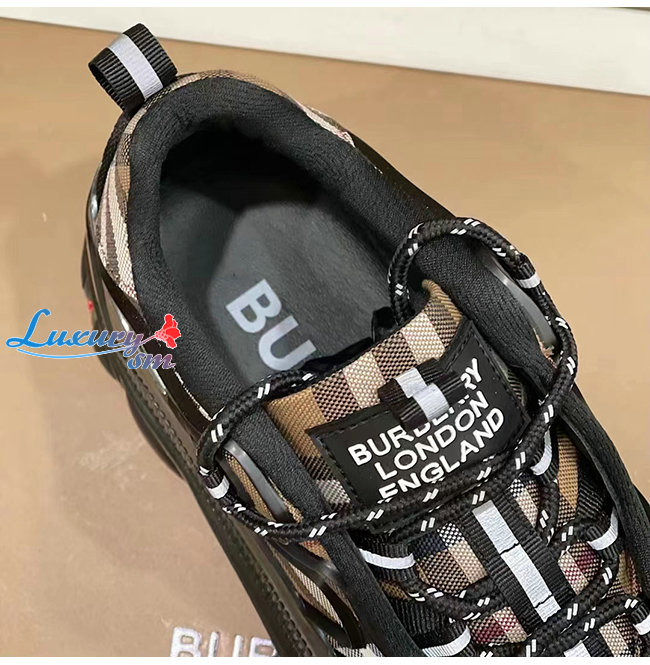 BURBERRY-80608591 버버리 버치 브라운 빈티지 체크 코튼 아서 스니커즈