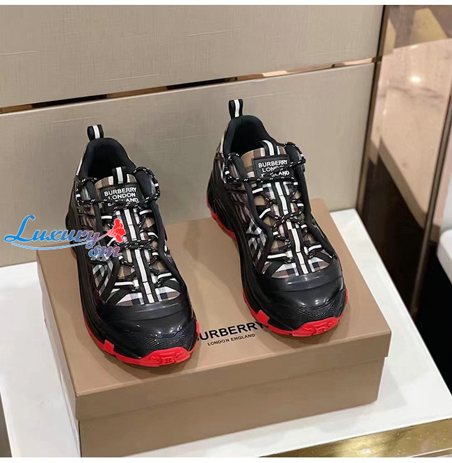 BURBERRY-80200891 버버리 블랙 나일론 인조 누벅 메시 아서 스니커즈 남여공용