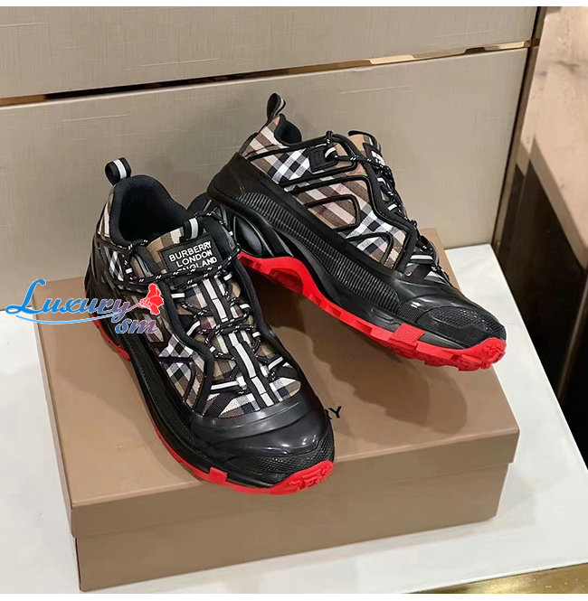 BURBERRY-80390471 버버리 베이지/블랙 빈티지 체크 코튼 아서 스니커즈