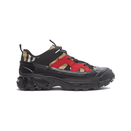 BURBERRY-80217721 버버리 베이지/레드 빈티지 체크 코튼 누벅 아서 스니커즈
