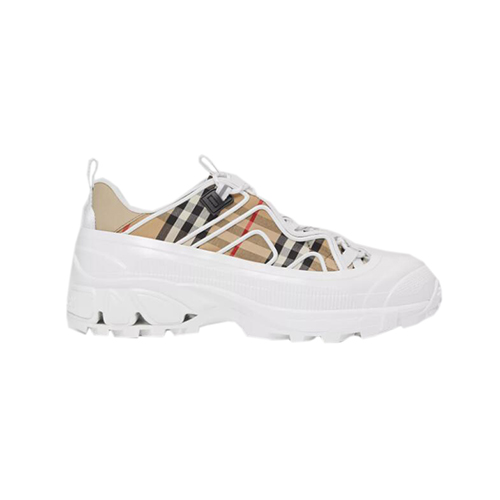 BURBERRY-80372541 버버리 베이지/화이트 빈티지 체크 코튼 레더 아서 스니커즈