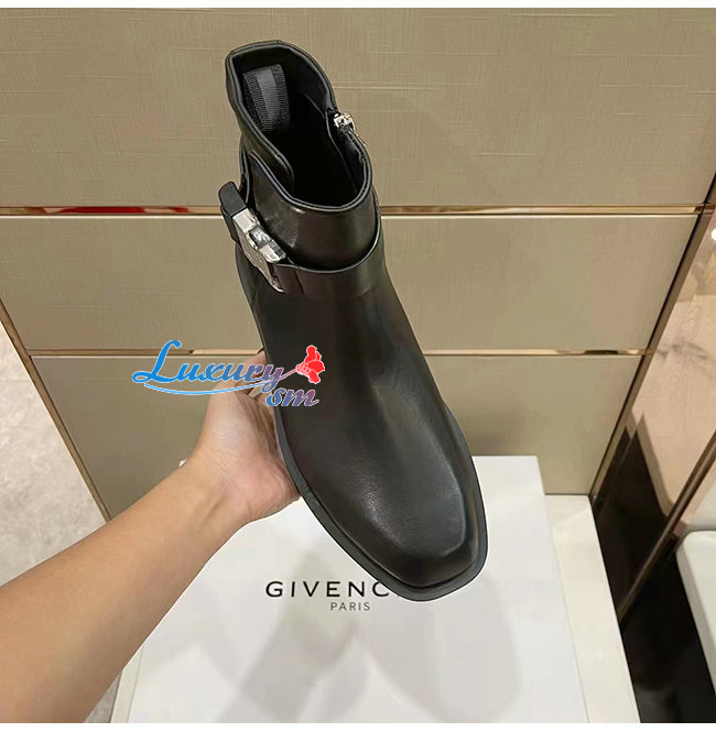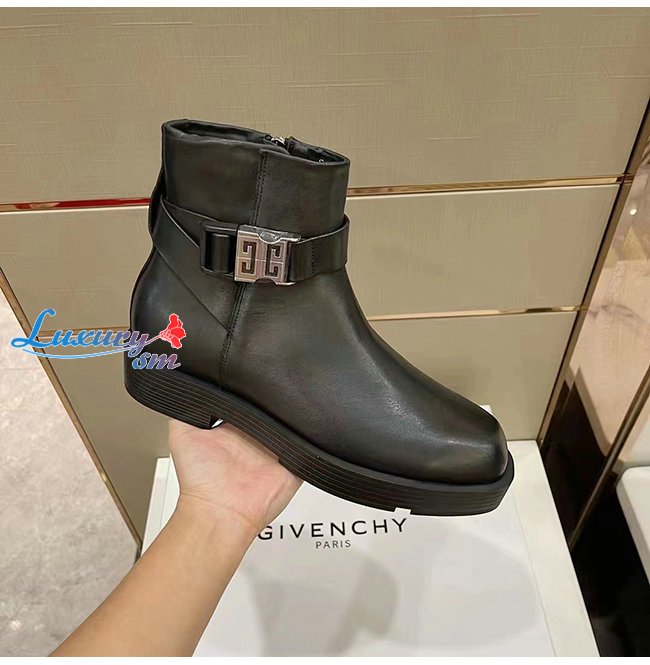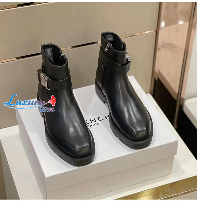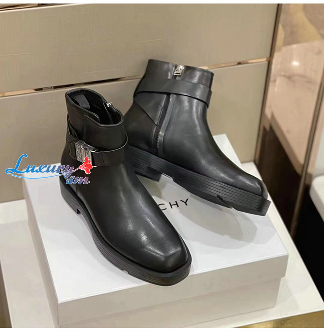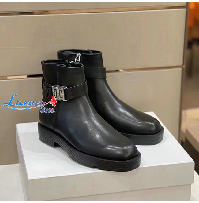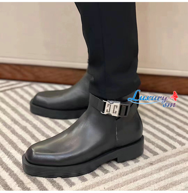 GIVENCHY-BH603BH 지방시 블랙 4G 버클 장식 스퀘어드 앵클 부츠 남성용