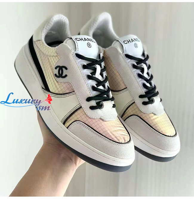 CHANEL-G39802 샤넬 화이트 패브릭 스웨이드 카프스킨 스니커즈 여성용 가격 : 260,000원
