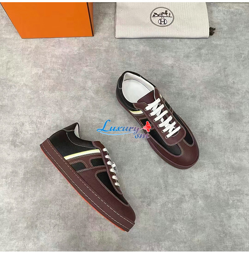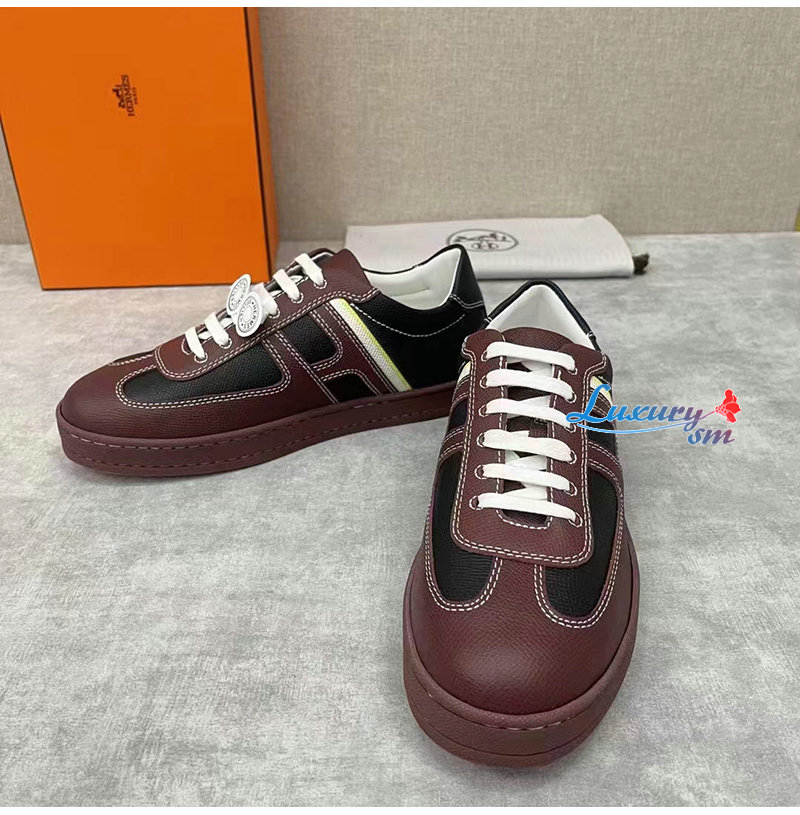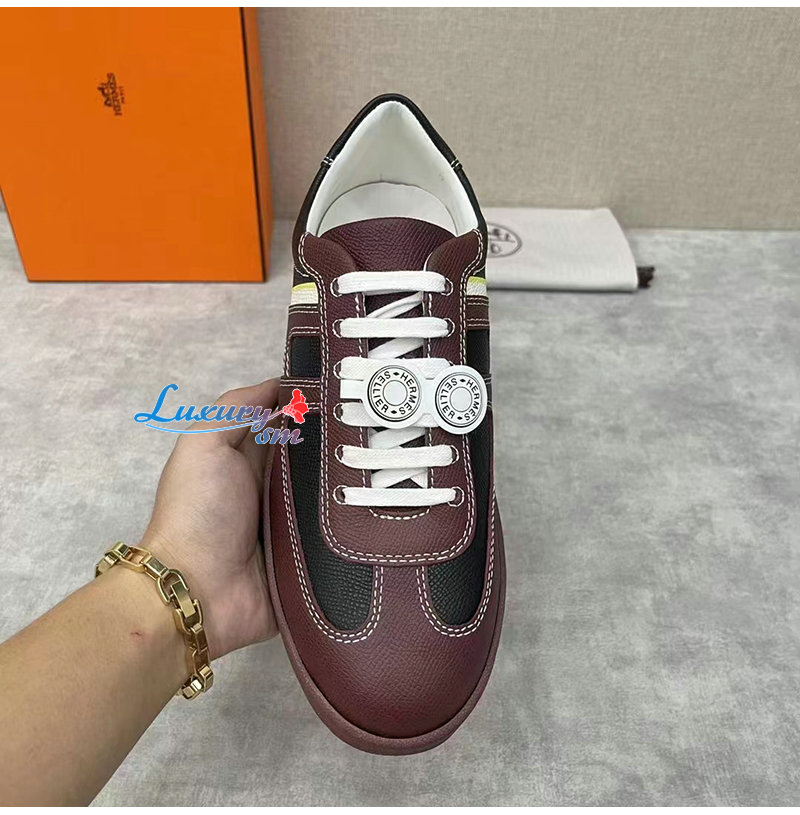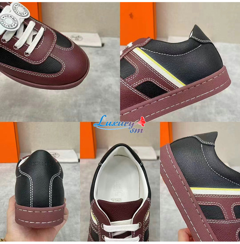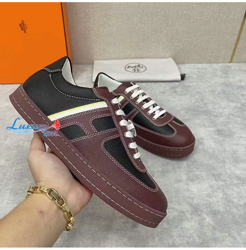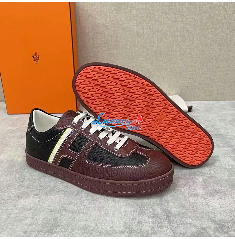 HERMES-H211861 에르메스 블랙/버건디 카프스킨 부메랑 스니커즈