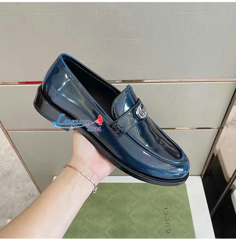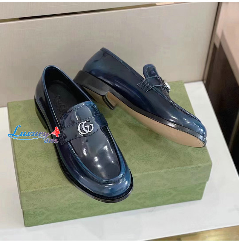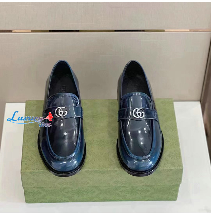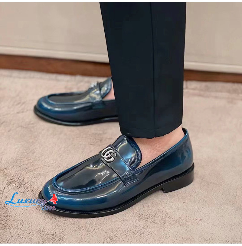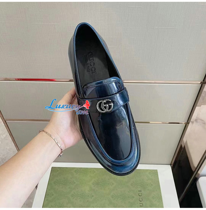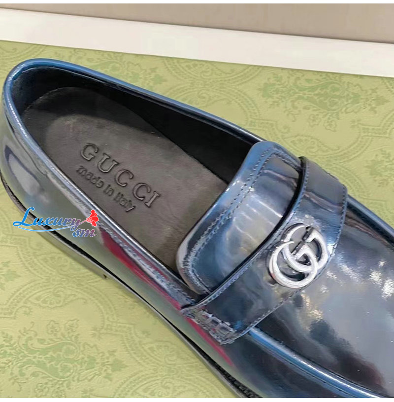 GUCCI-03112 구찌 네이비 페이턴트 가죽 더블 G 로퍼 남성용