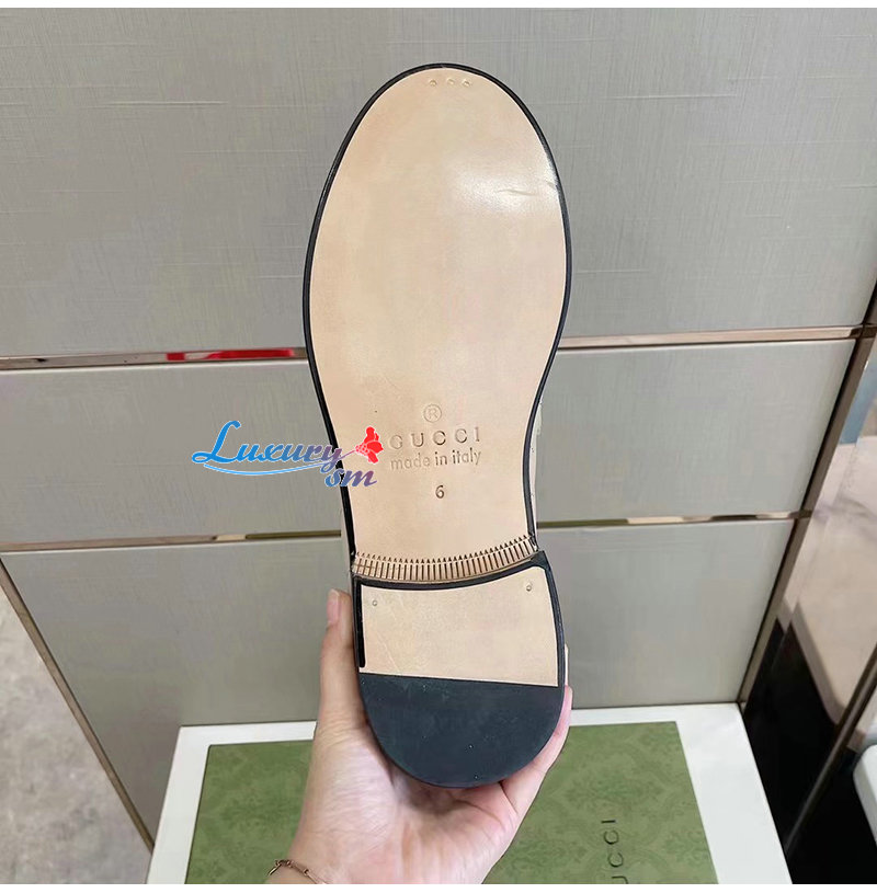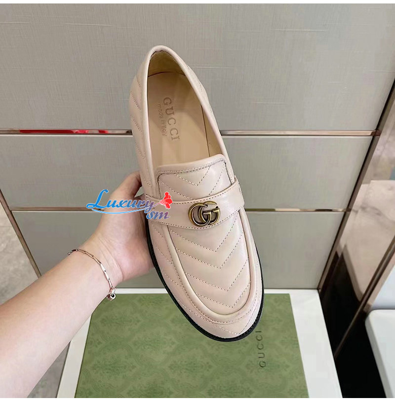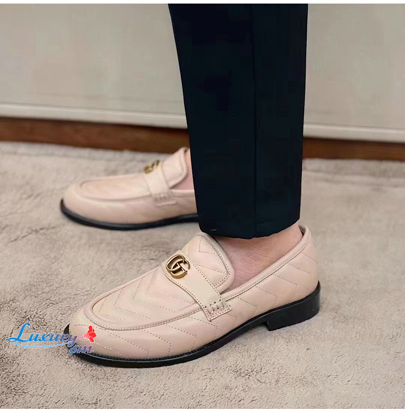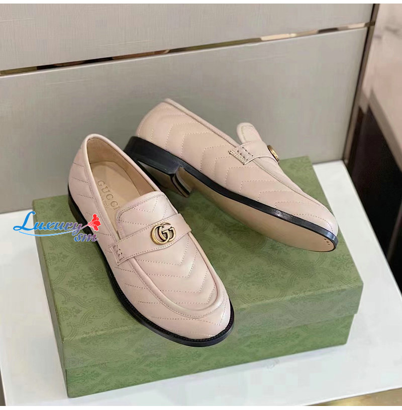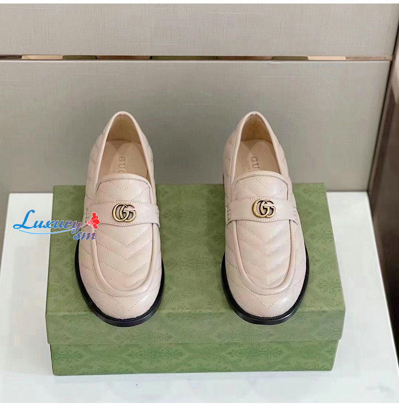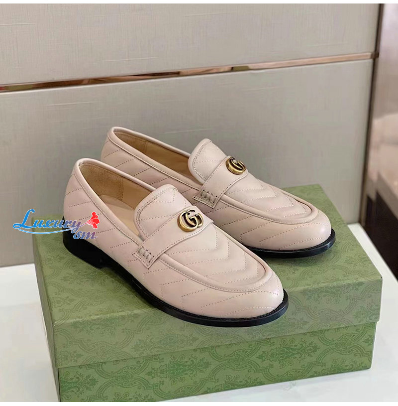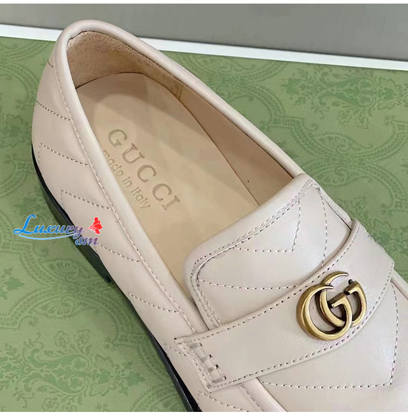 GUCCI-670399 1000 구찌 베이지 마틀라세 가죽 더블 G 로퍼 남성용