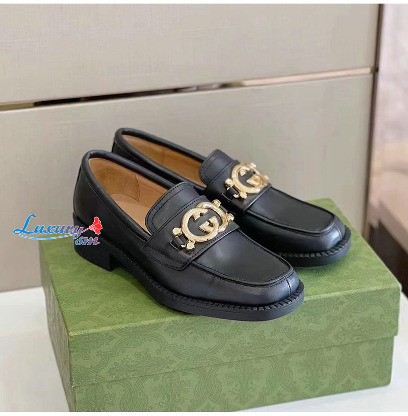 GUCCI-699623 1000 구찌 블랙 가죽 인터로킹 G 로퍼 남여공용