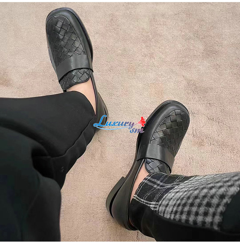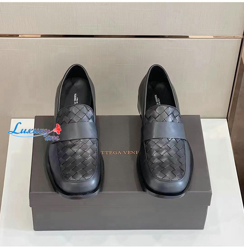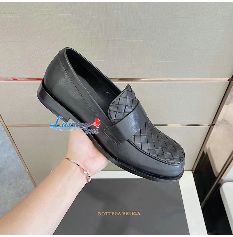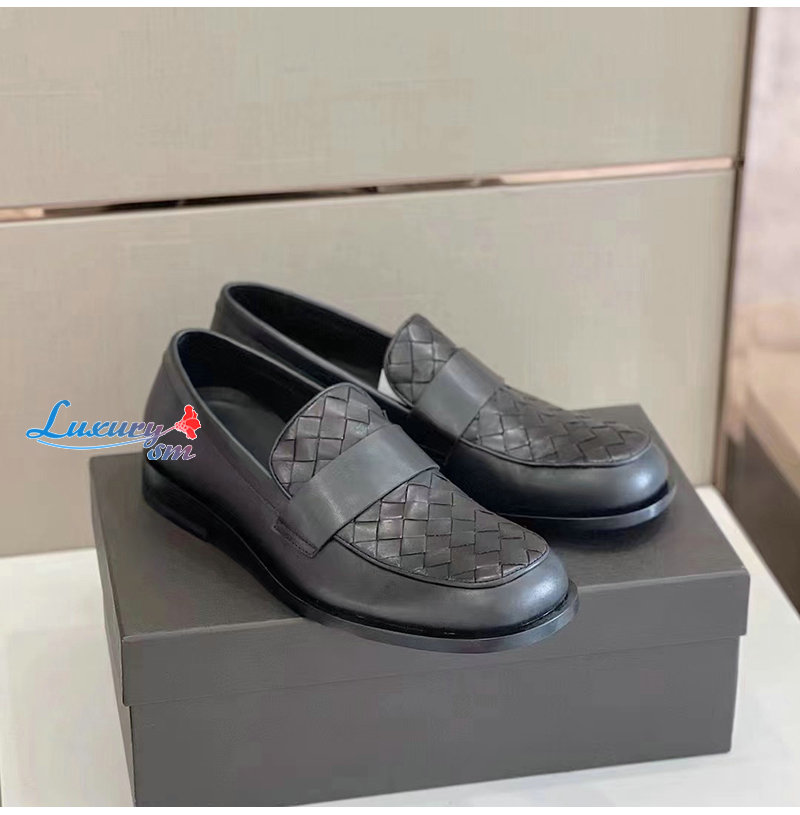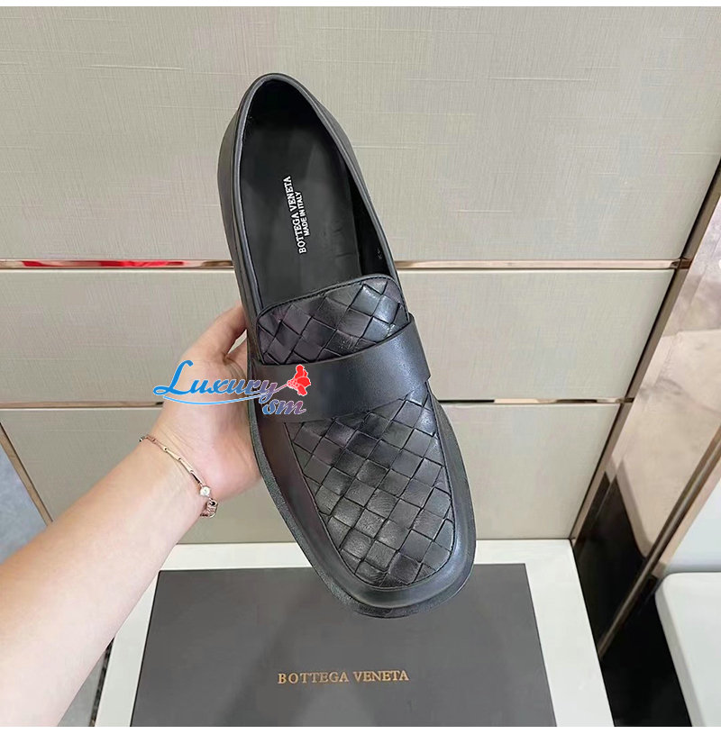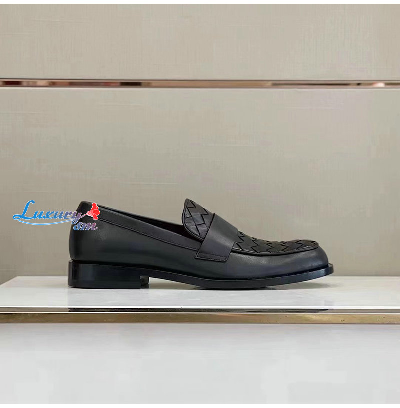 BOTTEGA VENETA-03116 보테가 베네타 블랙 가죽 인트레치아토 로퍼 남성용