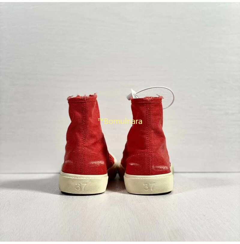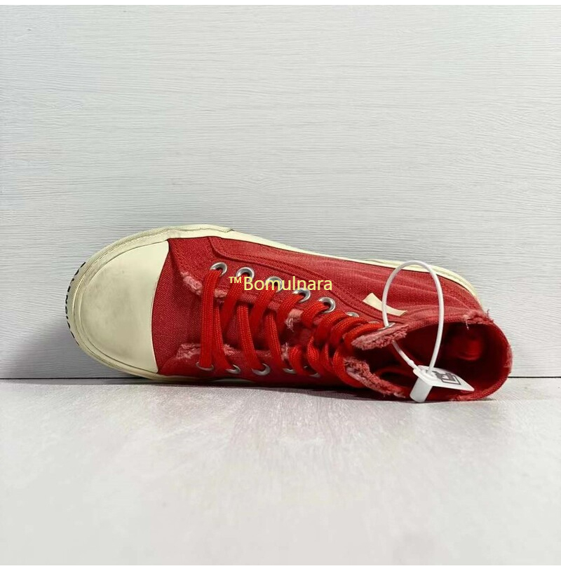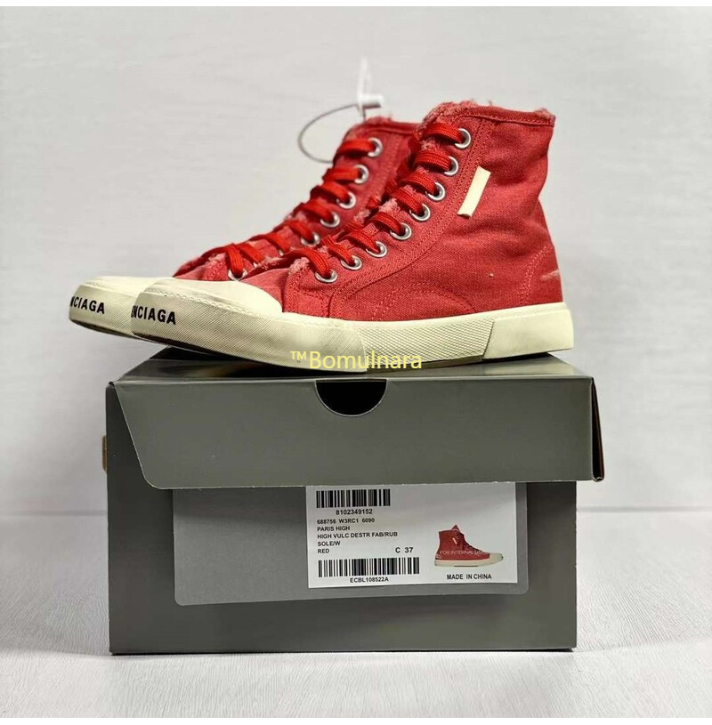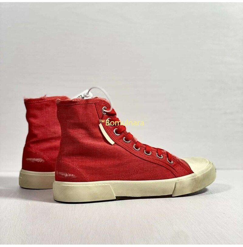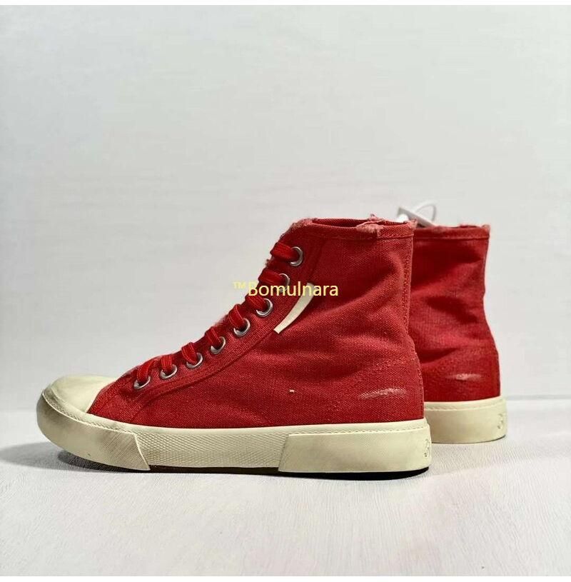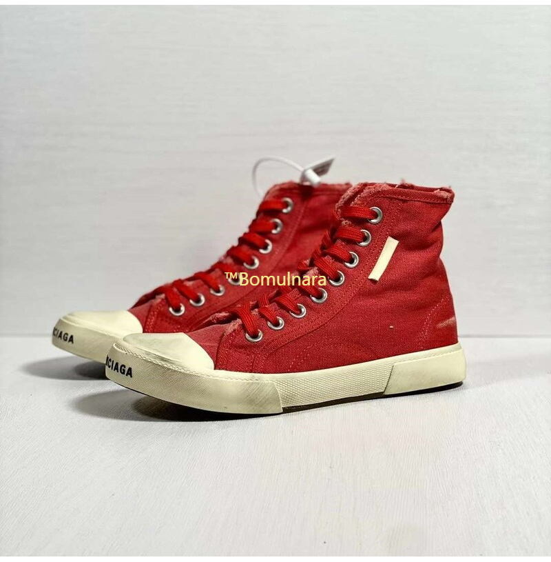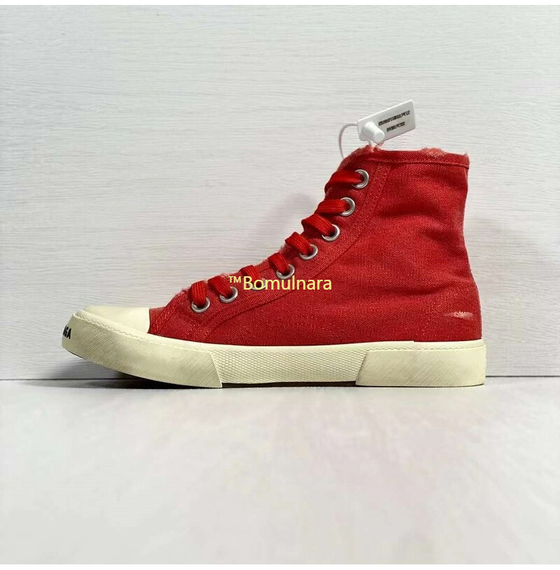 BALENCIAGA-688752 발렌시아가 레드 디스트로이드 코튼 앤 화이트 러버 Paris High Top 스니커즈