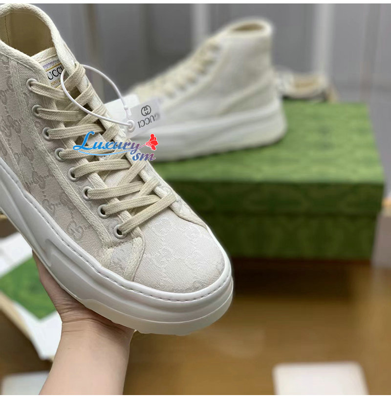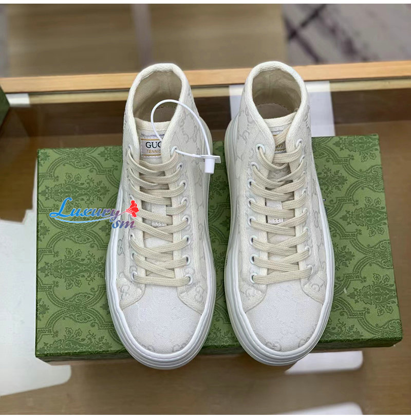 GUCCI-746768 9044 구찌 화이트 오리지널 GG 캔버스 하이탑 스니커즈 여성용