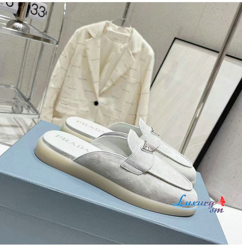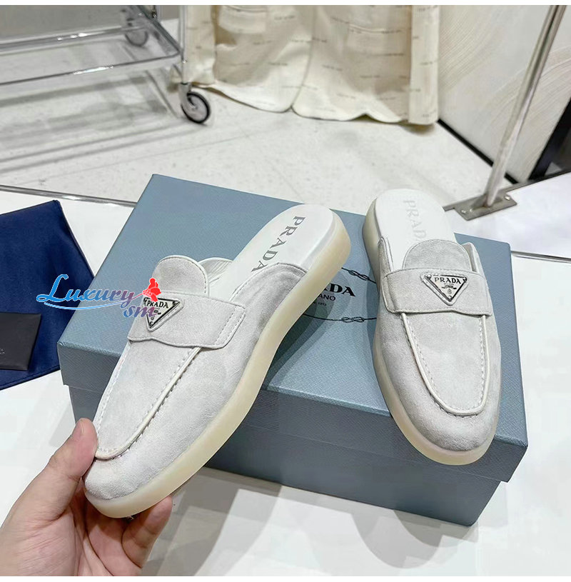 PRADA-1D270N 프라다 초크 화이트 스웨이드 가죽 사보 여성용