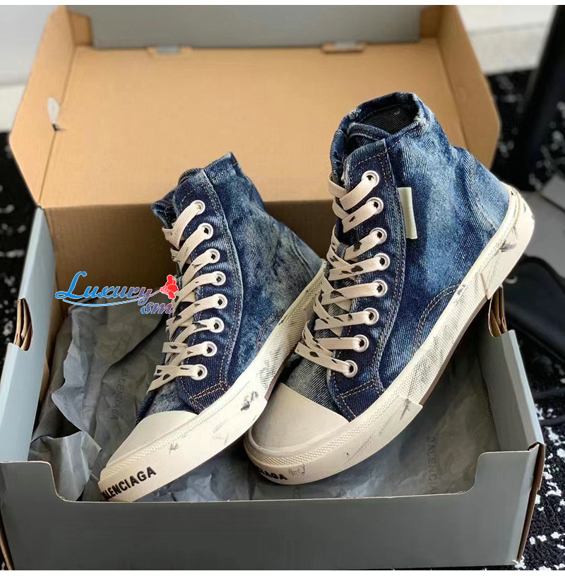 BALENCIAGA-688756 발렌시아가 블루 디스트로이드 데님 PARIS HIGH TOP 스니커즈 남여공용