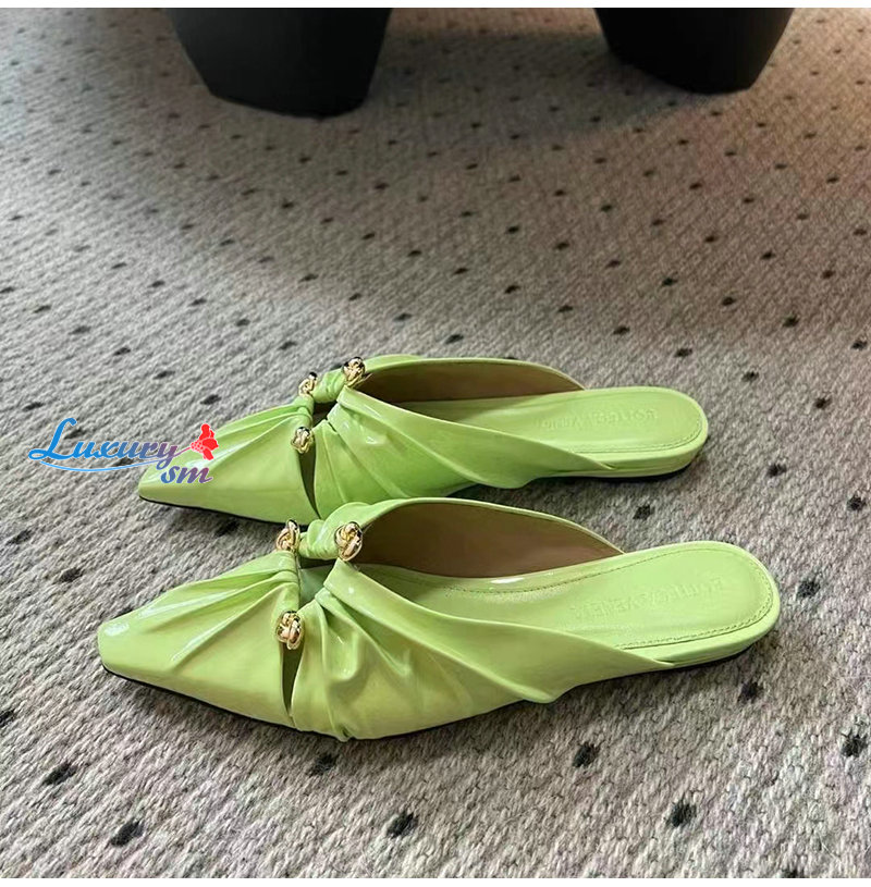 BOTTEGA VENETA-753665 보테가 베네타 그린 버니 뮬 플랫