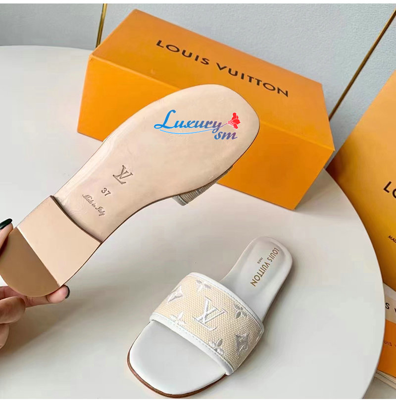 LOUIS VUITTON-1ABTVW 루이비통 화이트 리바이벌 플랫 뮬 여성용