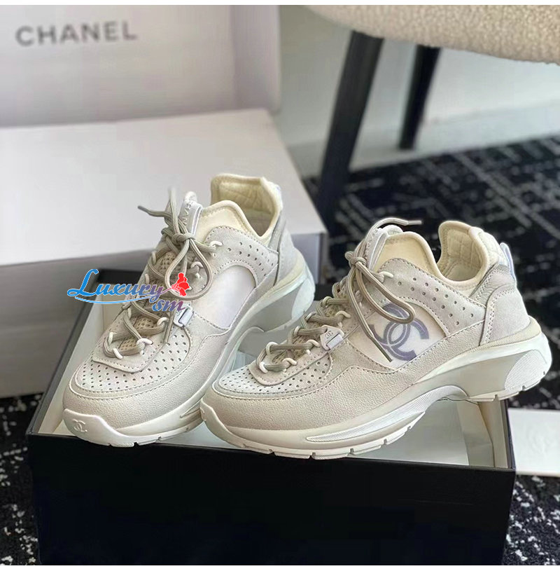 CHANEL-07151 샤넬 아이보리 테크니컬 캔버스 스니커즈 여성용