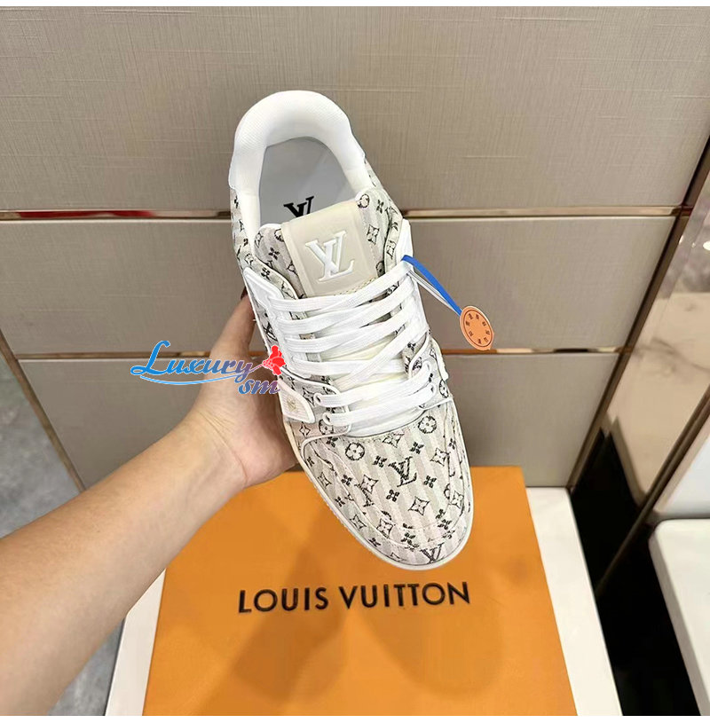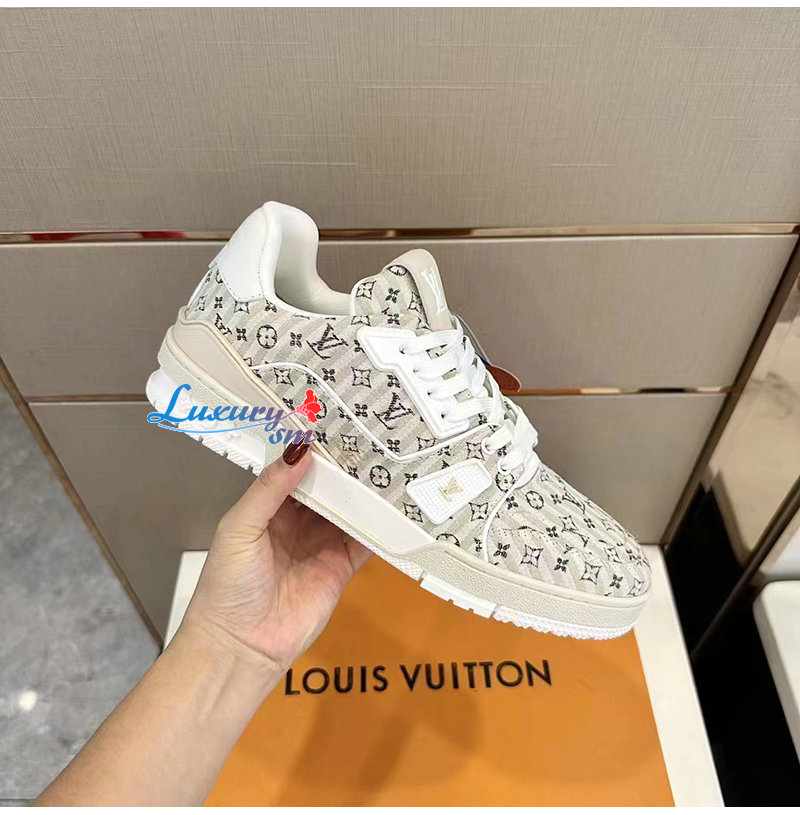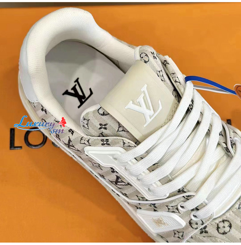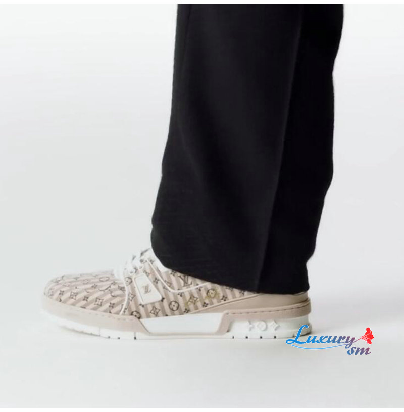 LOUIS VUITTON-1ABG0L 루이비통 베쥬 모노그램 텍스타일 LV 트레이너 스니커즈 남성용