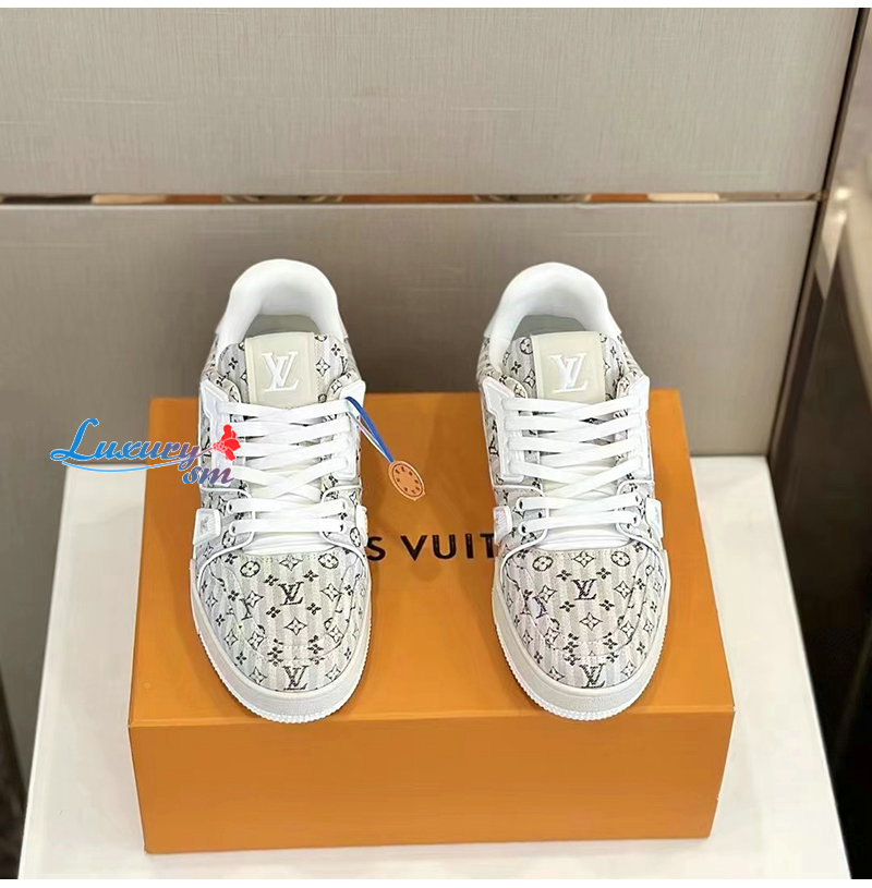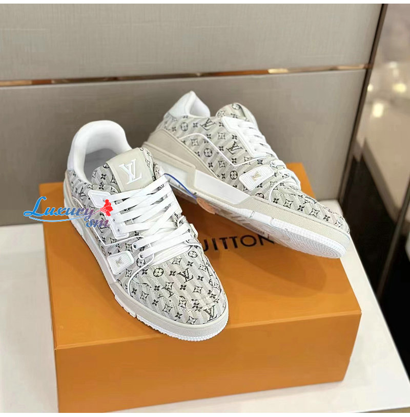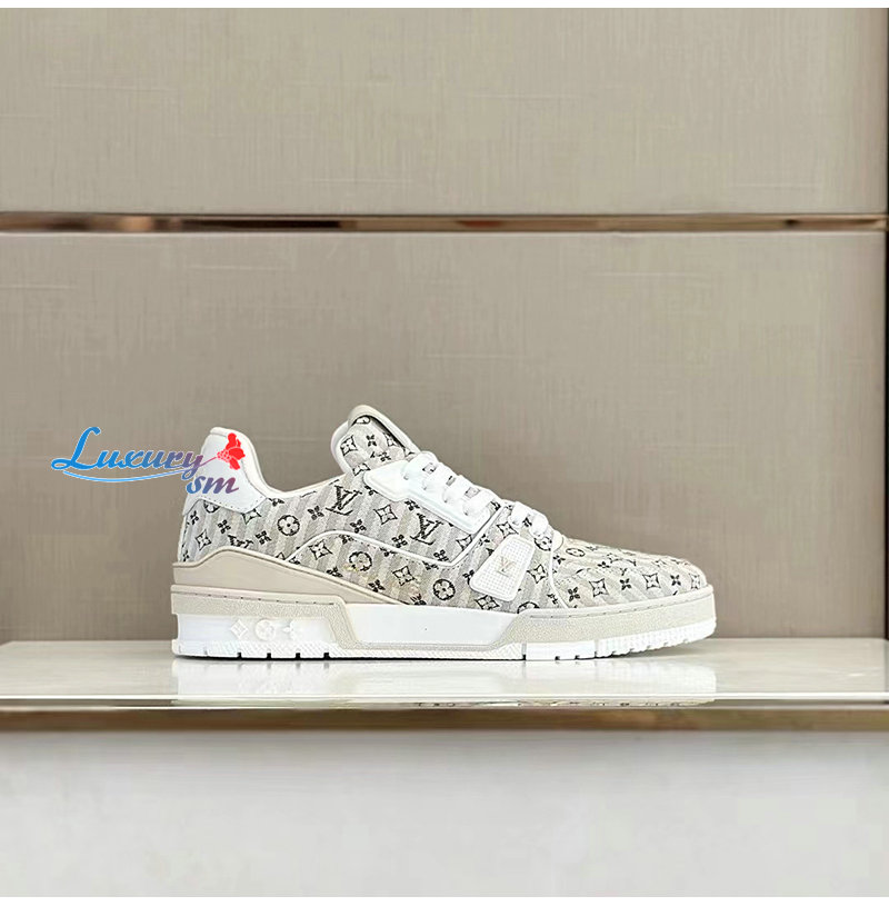 LOUIS VUITT**-1A9ZIE 루이비통 블루 모노그램 데님 LV 트레이너 스니커즈