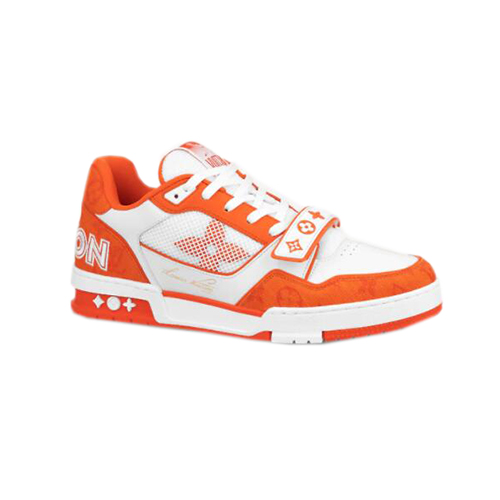LOUIS VUITT**-1A9ZBB 루이비통 오렌지 모노그램 데님 LV 트레이너 스니커즈 남여공용
