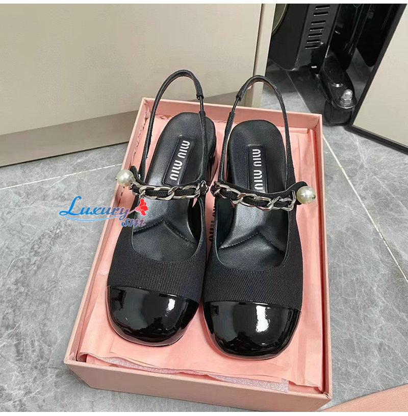 MIUMIU-5I045E 미우미우 블랙 개버딘 슬링백 펌프스