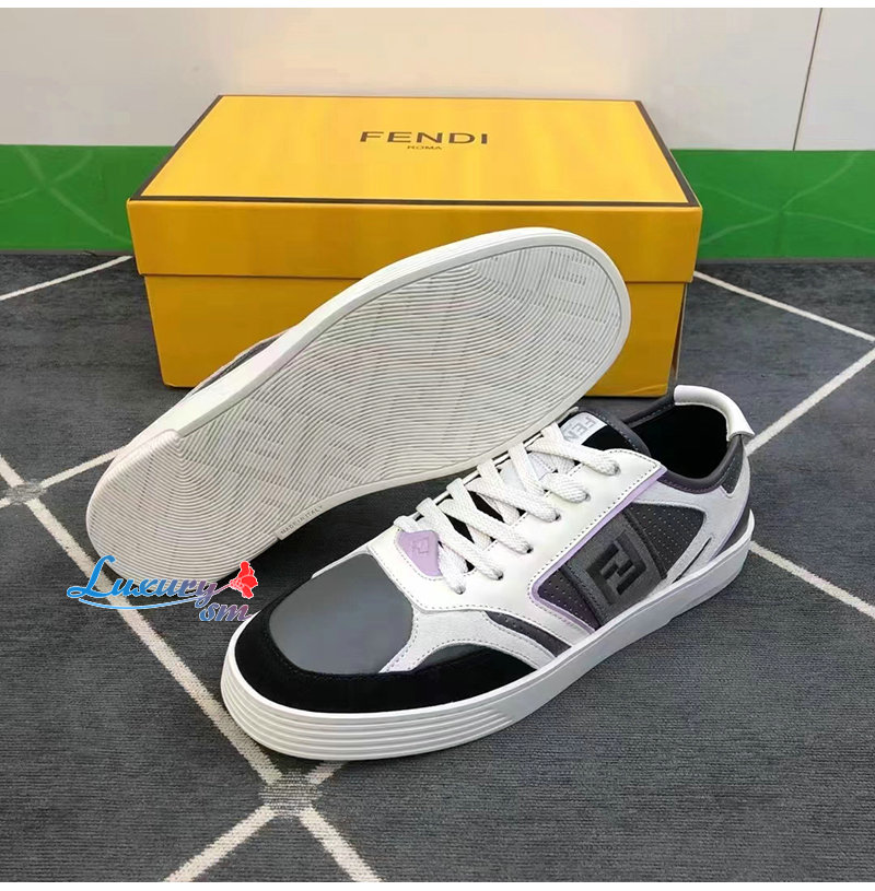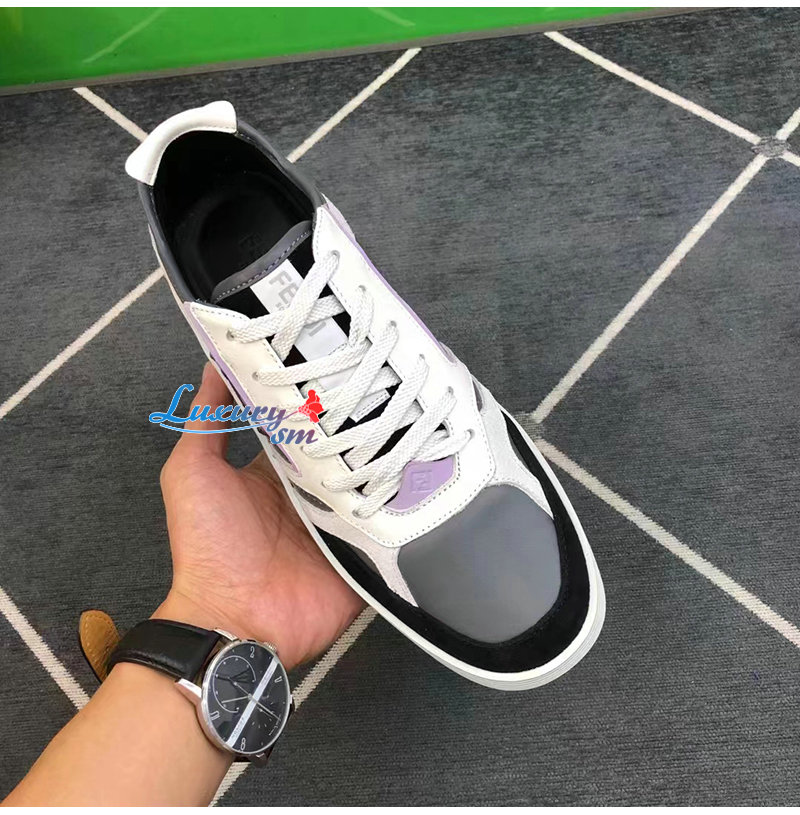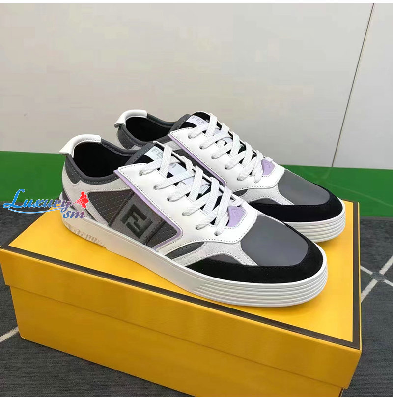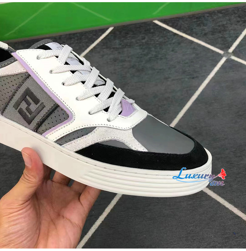 FENDI-7E1631 펜디 그레이 가죽 펜디 스텝 로우탑 스니커즈 남성용