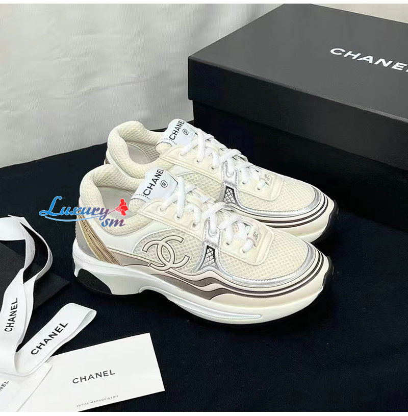 CHANEL-G45077 샤넬 아이보리 패브릭 스니커즈