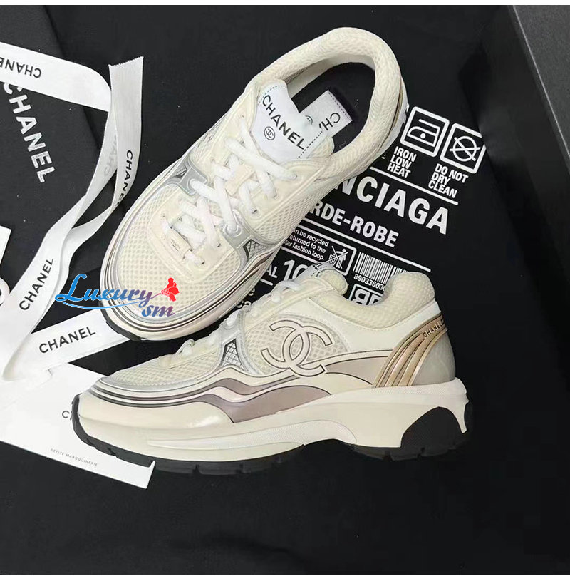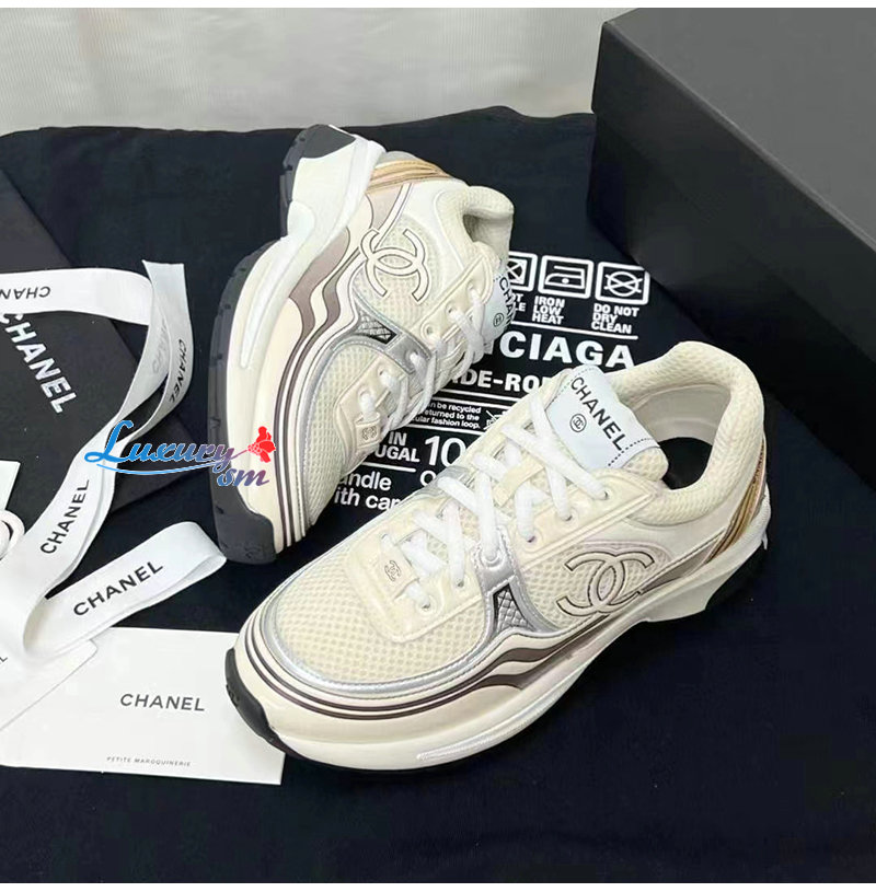 CHANEL-G45077 샤넬 아이보리 패브릭 스니커즈 여성용