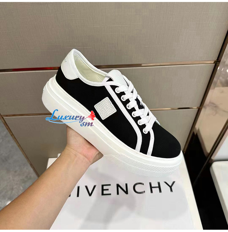 GIVENCHY-BE003FE 지방시 블랙 City 캔버스 플랫폼 스니커즈 남여공용