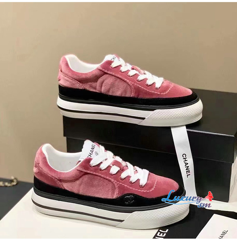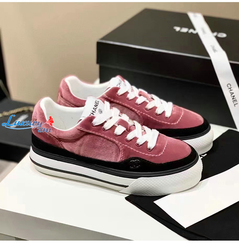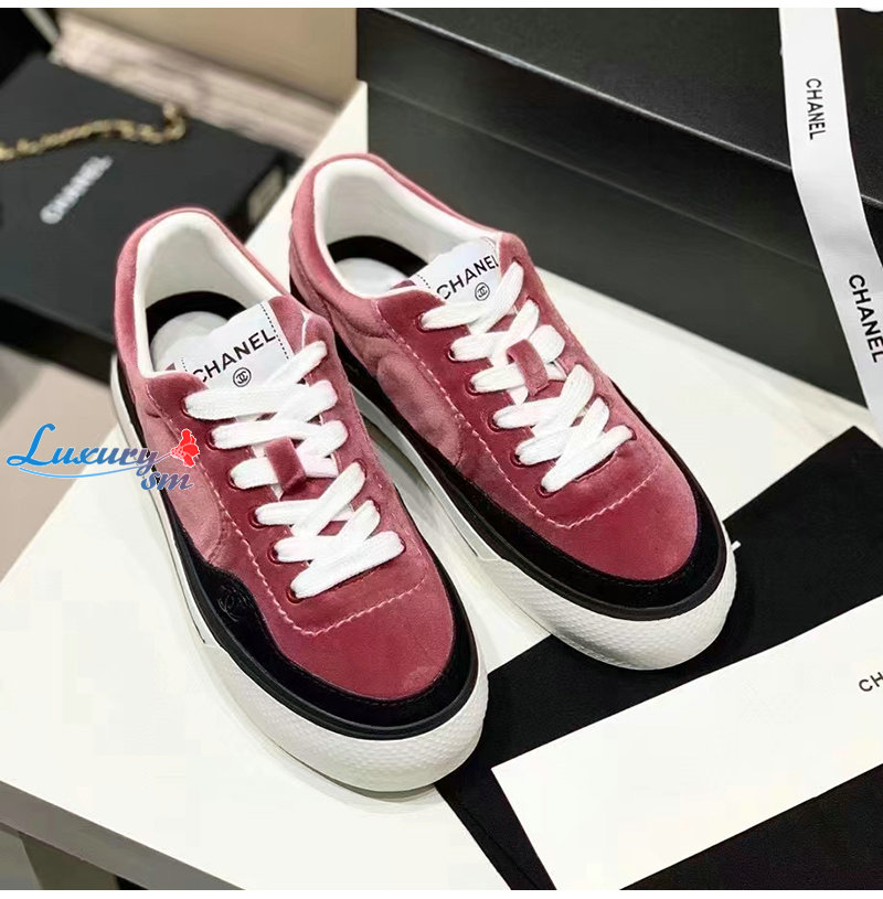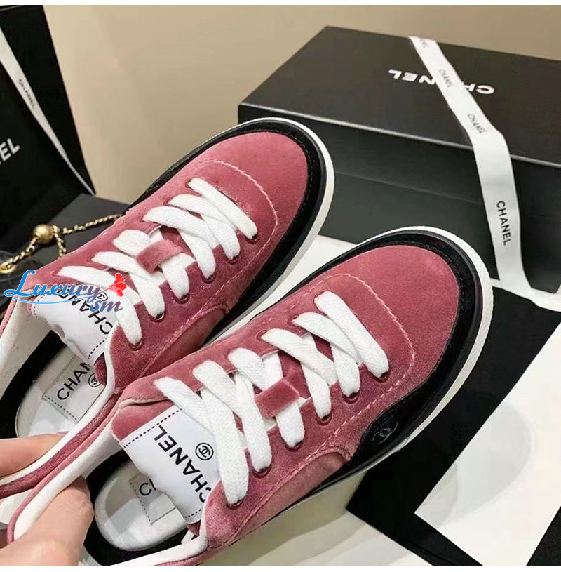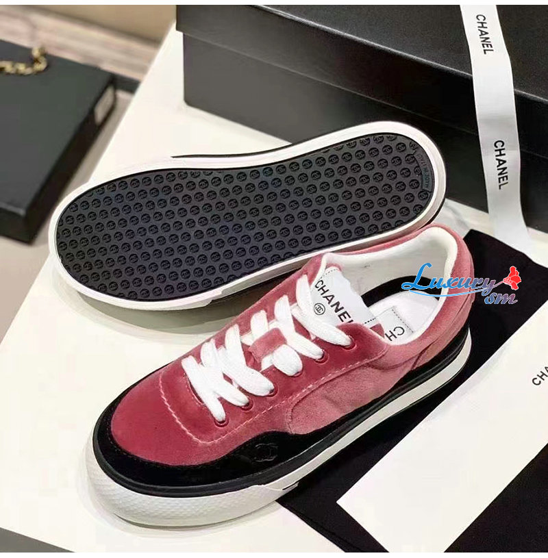CHANEL-G45208 샤넬 핑크 벨벳 스니커즈 여성용