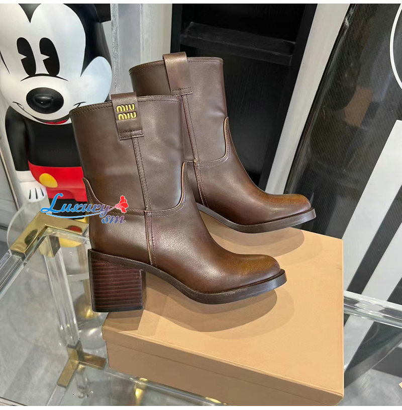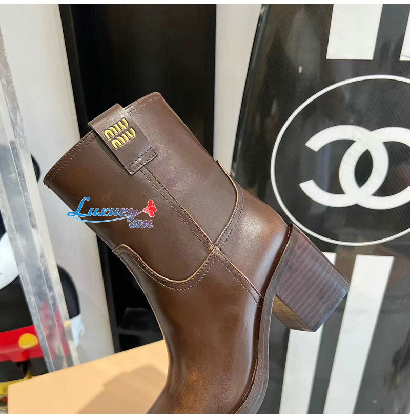 MIUMIU-5U966D 미우미우 시에나 퓌메 가죽 부티 여성용