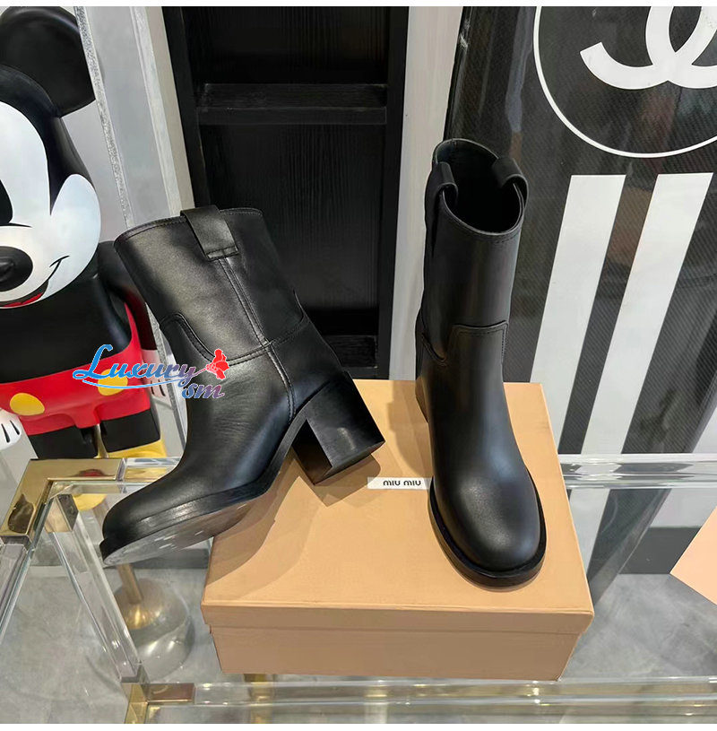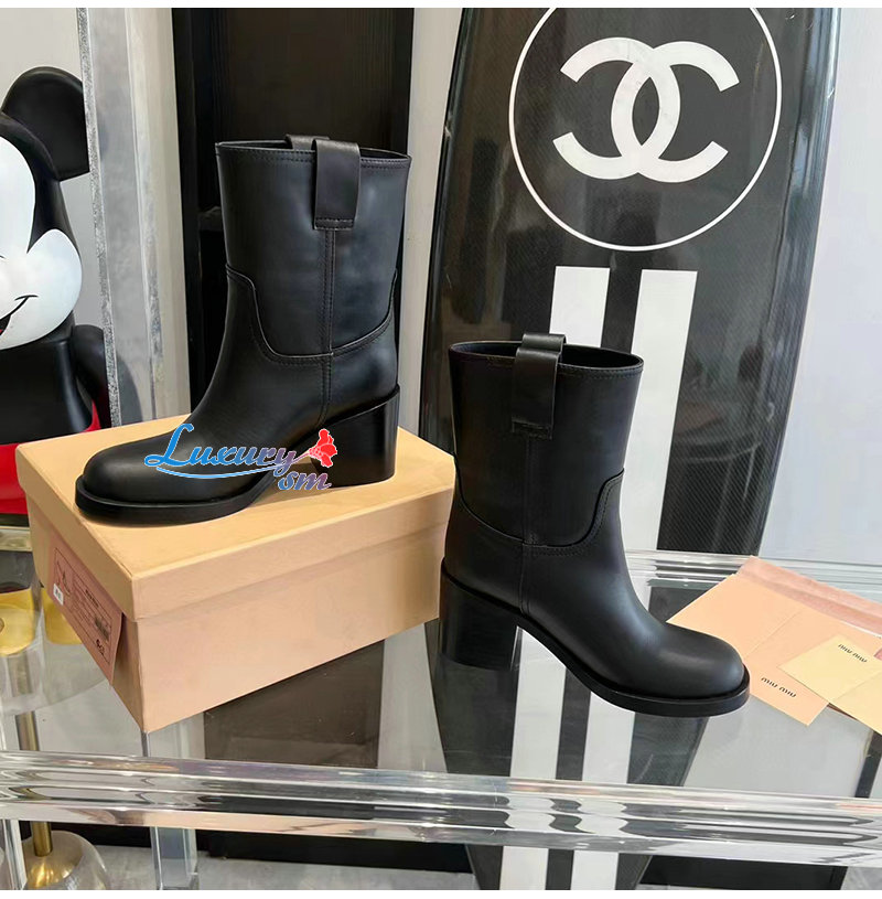 MIUMIU-5U966D 미우미우 블랙 가죽 부티 여성용
