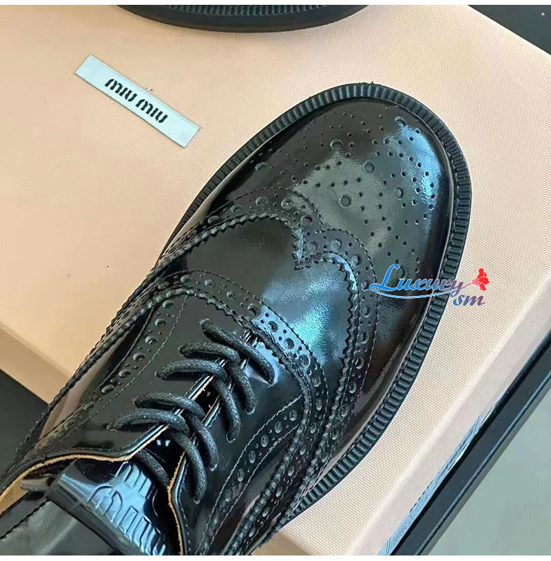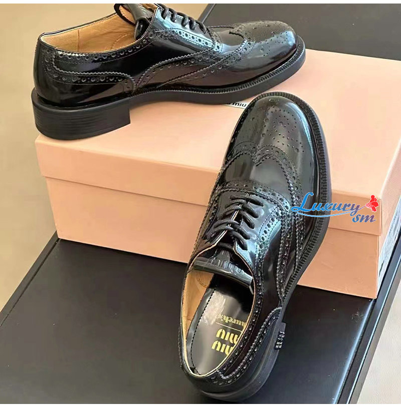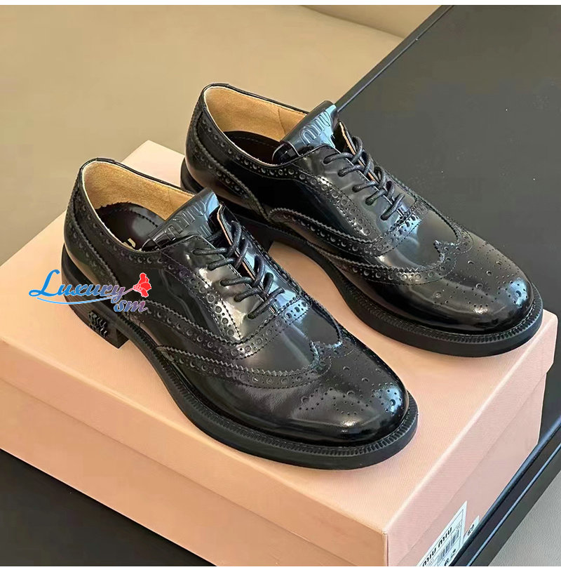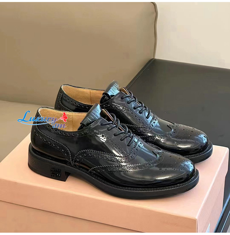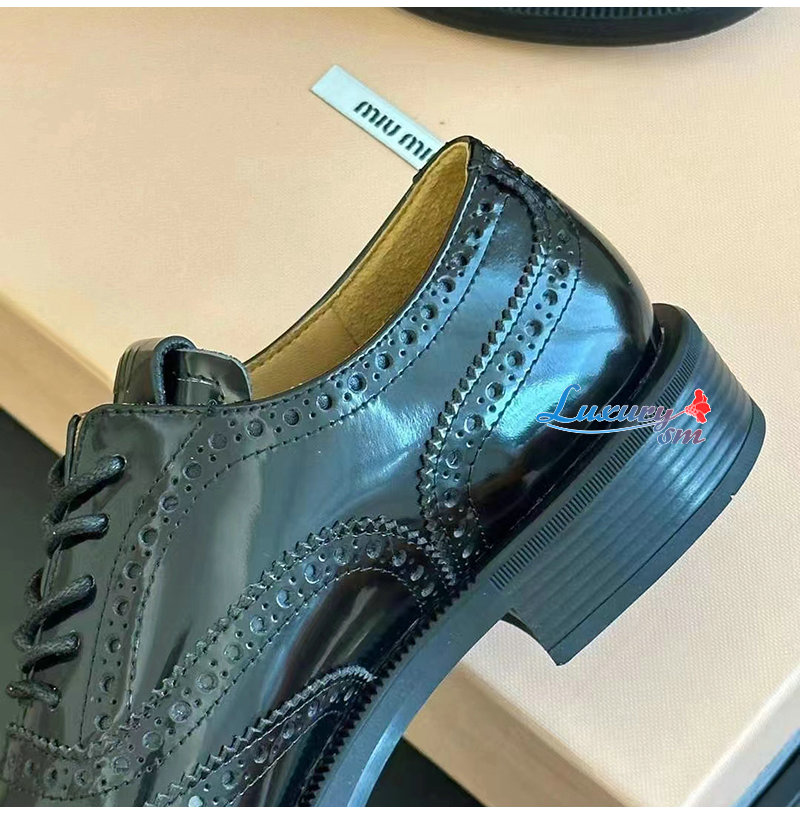 MIUMIU-5E038E 미우미우 블랙 처치스 x 미우미우 옥스포드 브로그 슈즈 여성용