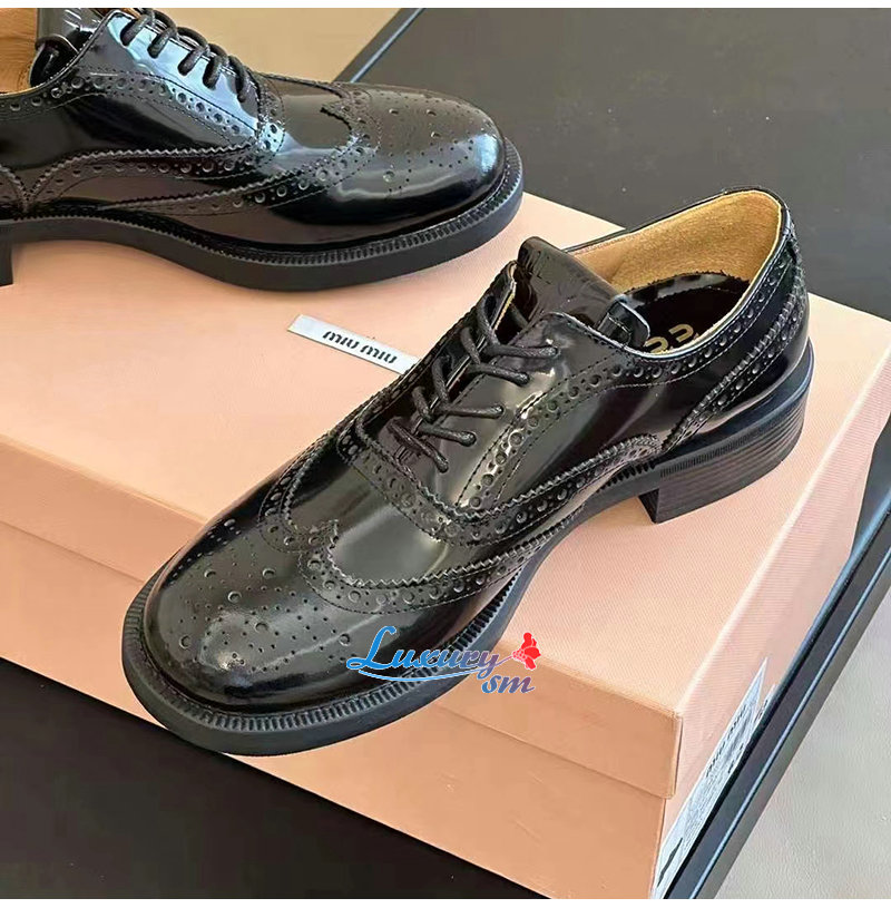 MIUMIU-5E038E 미우미우 타바코 처치스 x 미우미우 옥스포드 브로그 슈즈 여성용