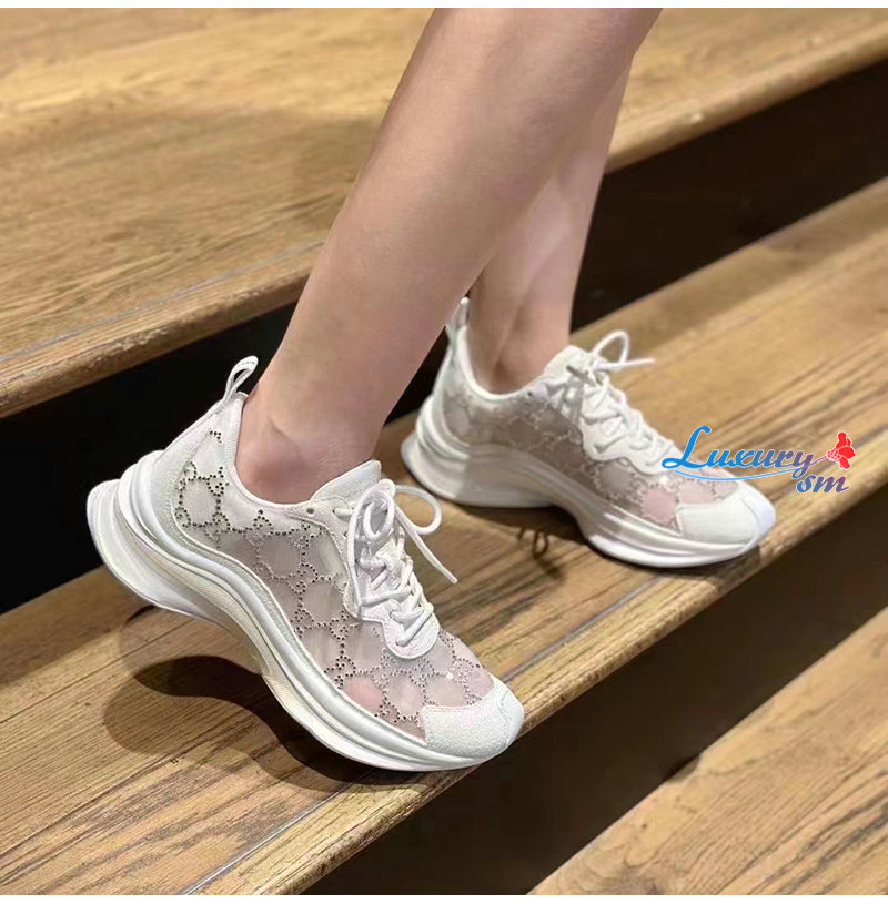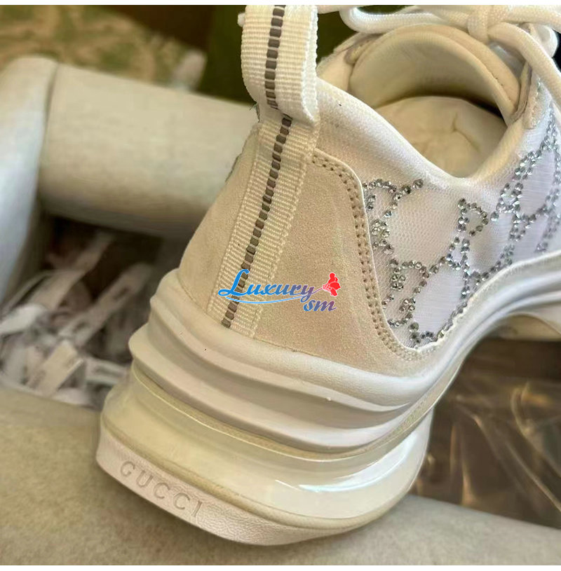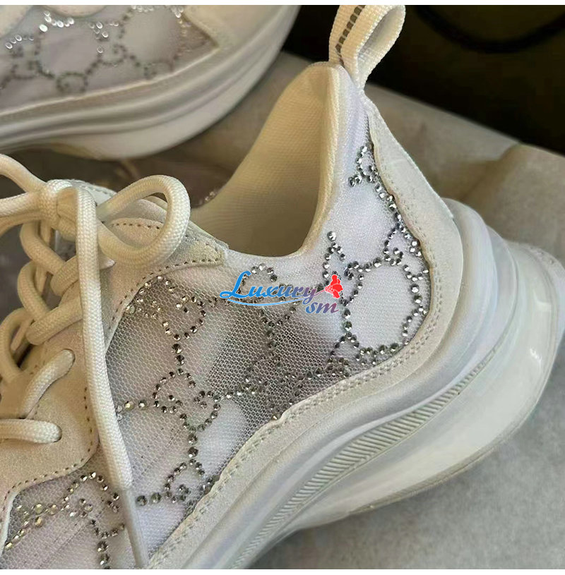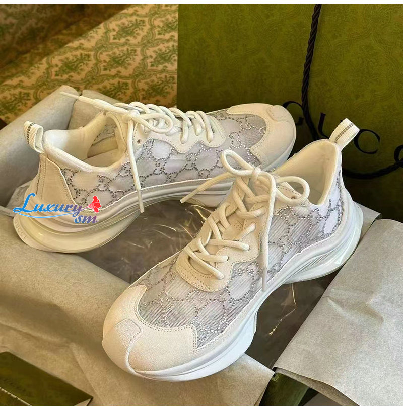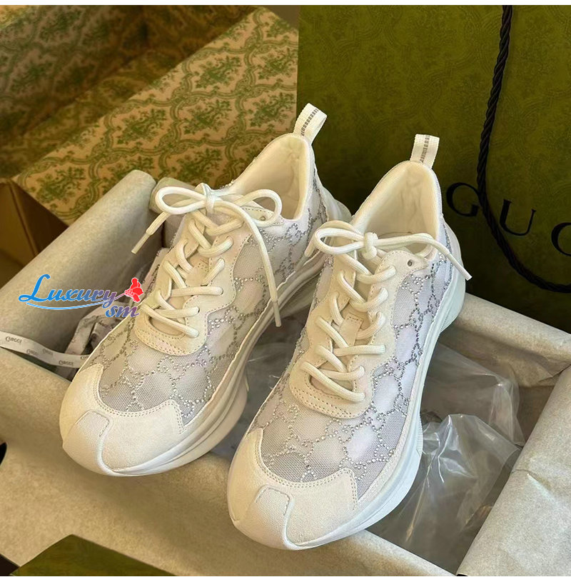 GUCCI-758088 9086 구찌 화이트 GG 크리스털 메시 구찌 런 스니커즈 여성용