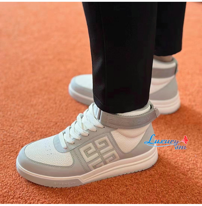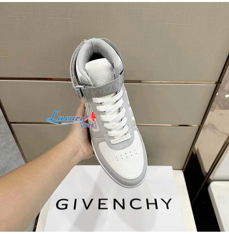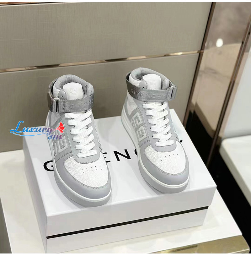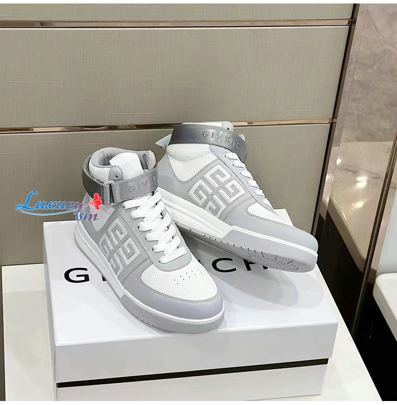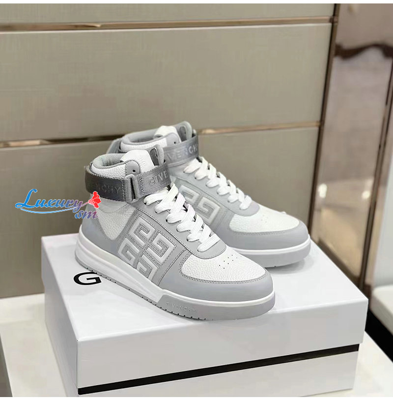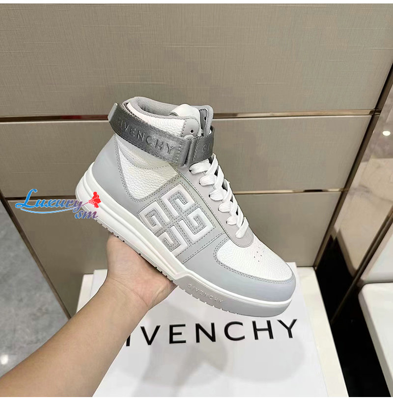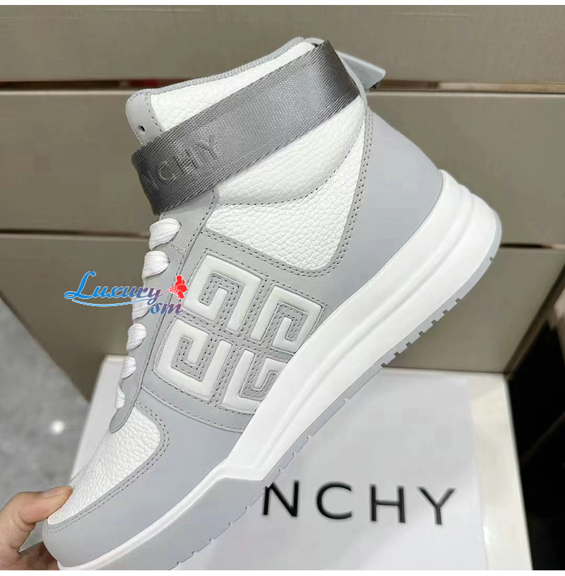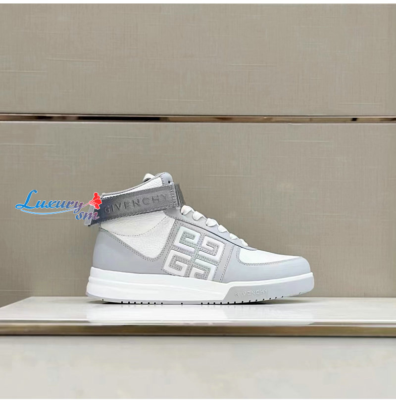 GIVENCHY-BH008UH1 지방시 화이트/그레이 G4 가죽 하이탑 스니커즈
