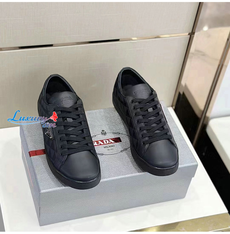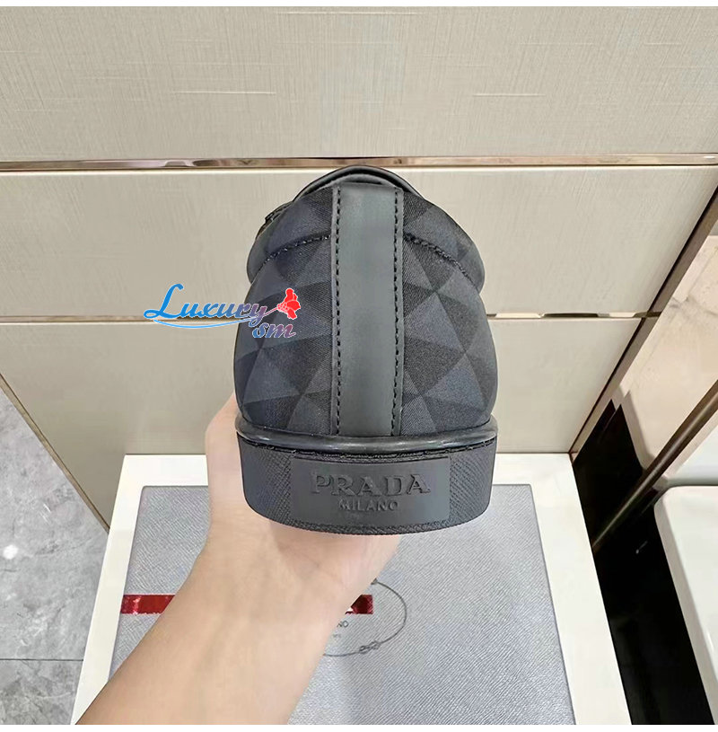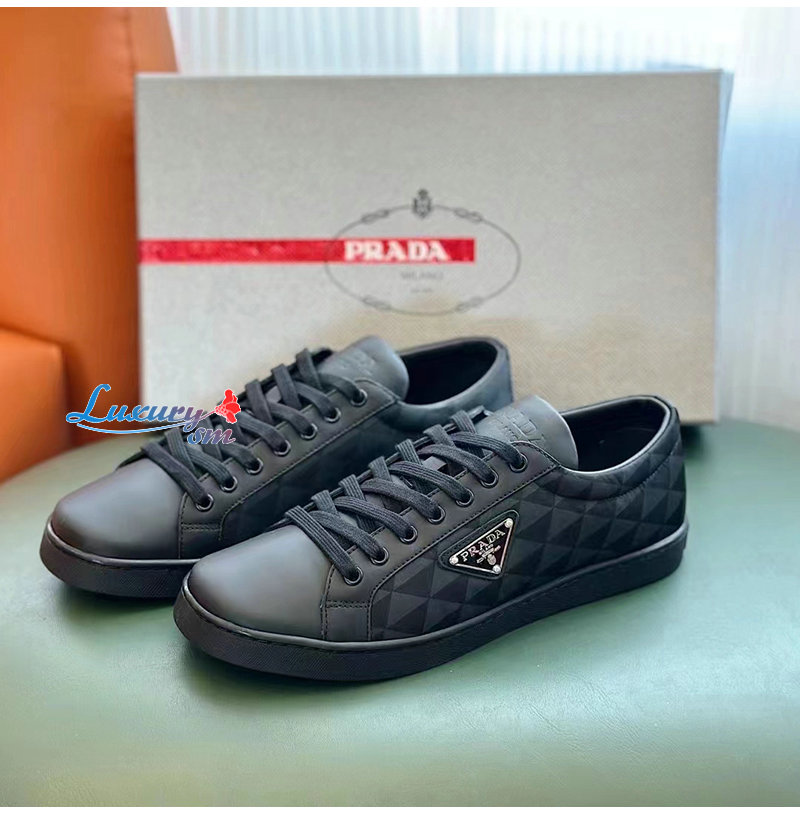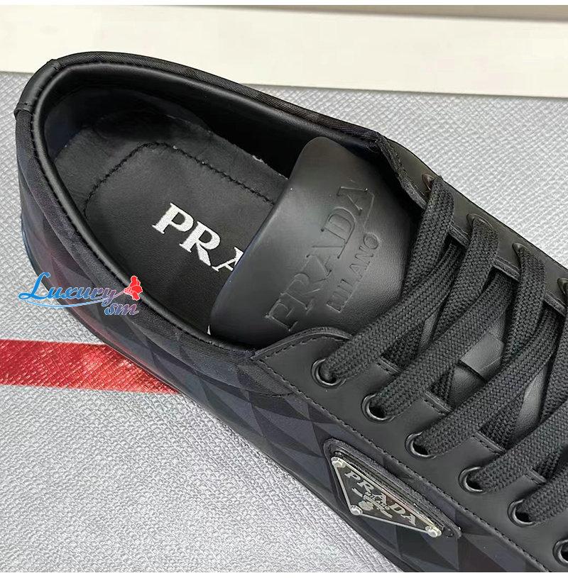 PRADA-2EE376 프라다 블랙 나일론 가죽 스니커즈