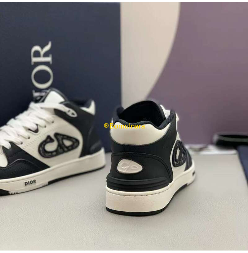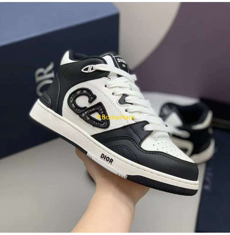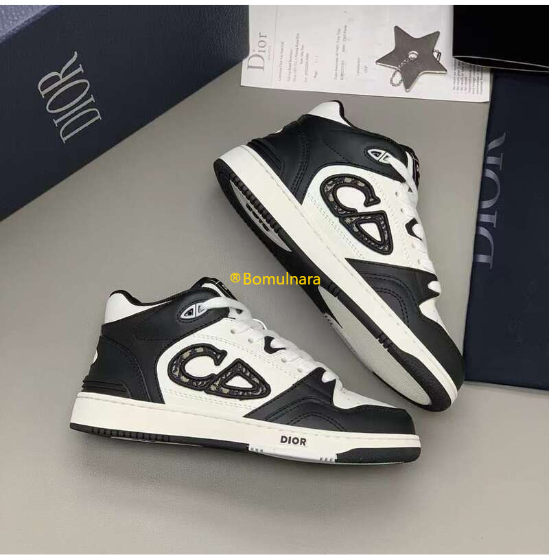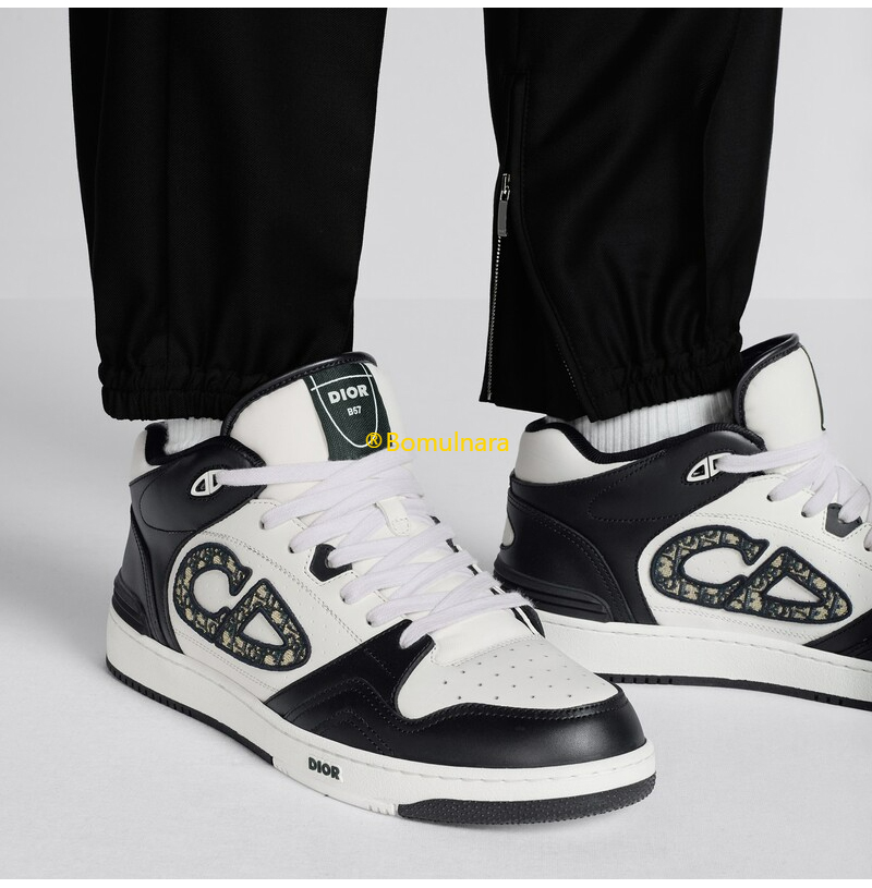 DIOR-3SH141 디올 블랙/화이트 카프스킨 B57 미드탑 스니커즈 남녀공용
