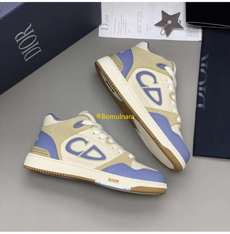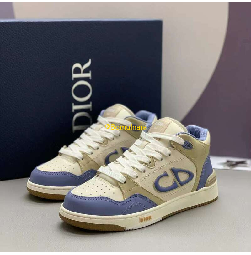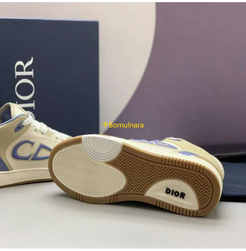 DIOR-3SH141 디올 블루/크림 카프스킨 B57 미드탑 운동화 남녀공용