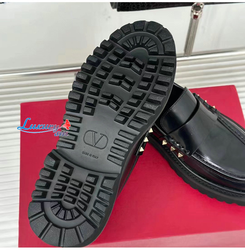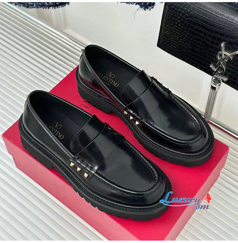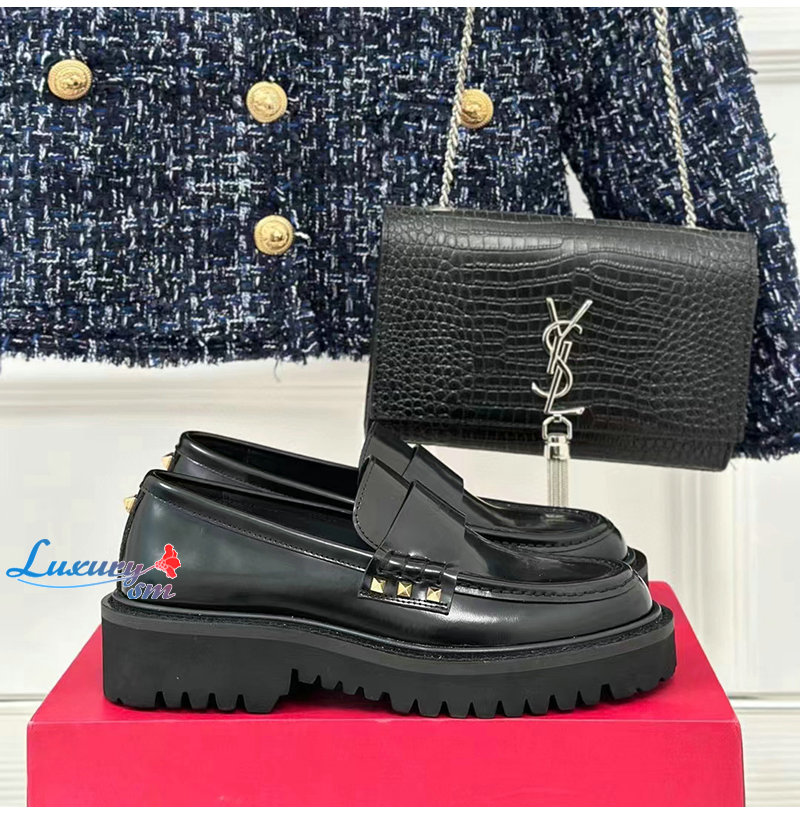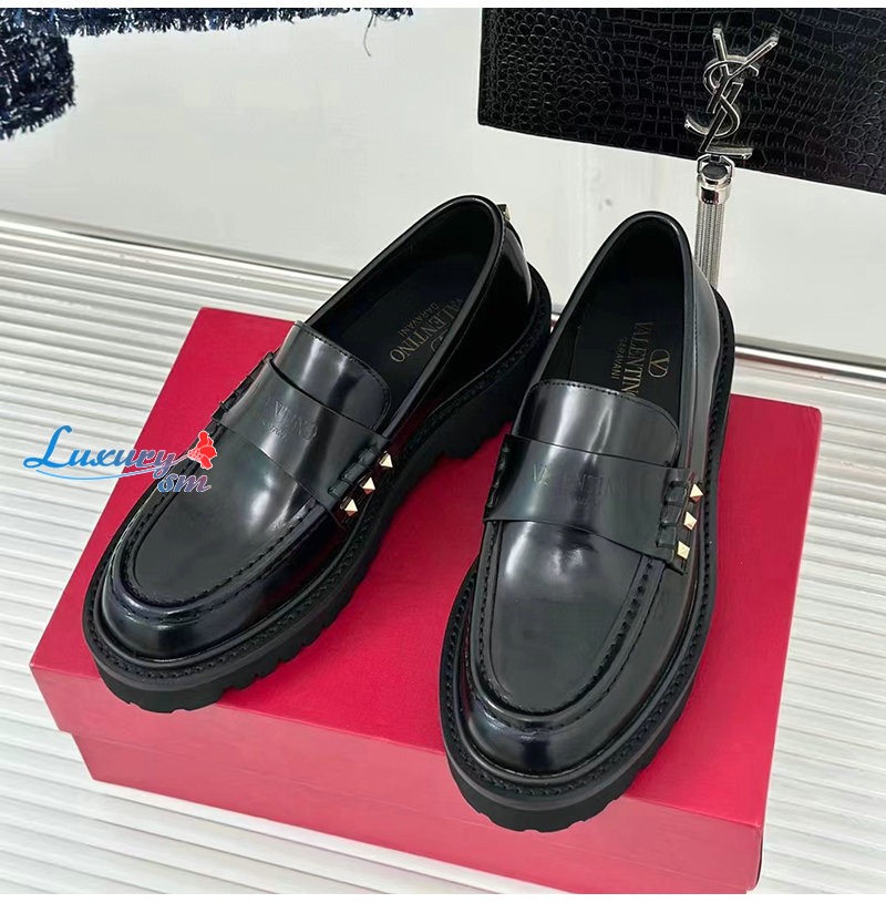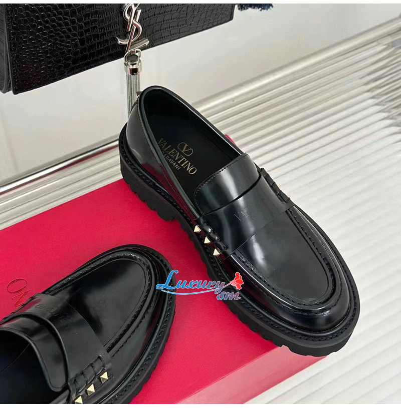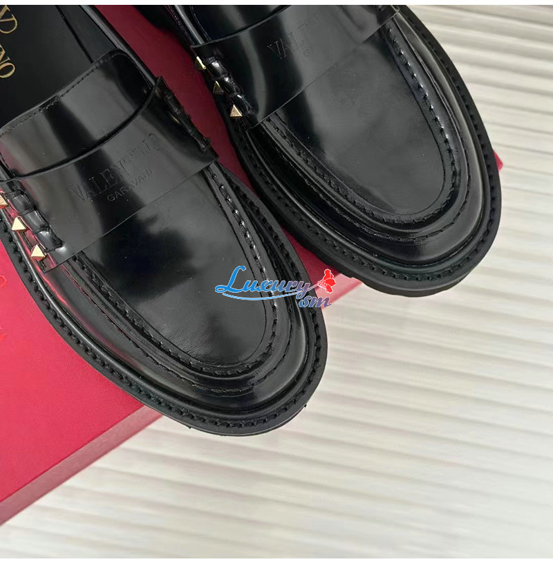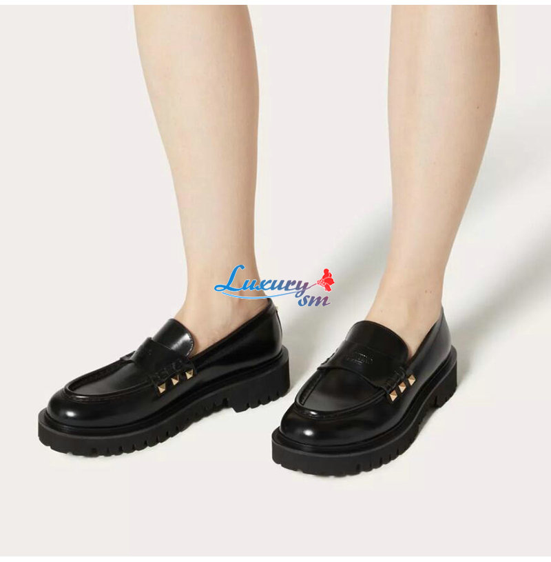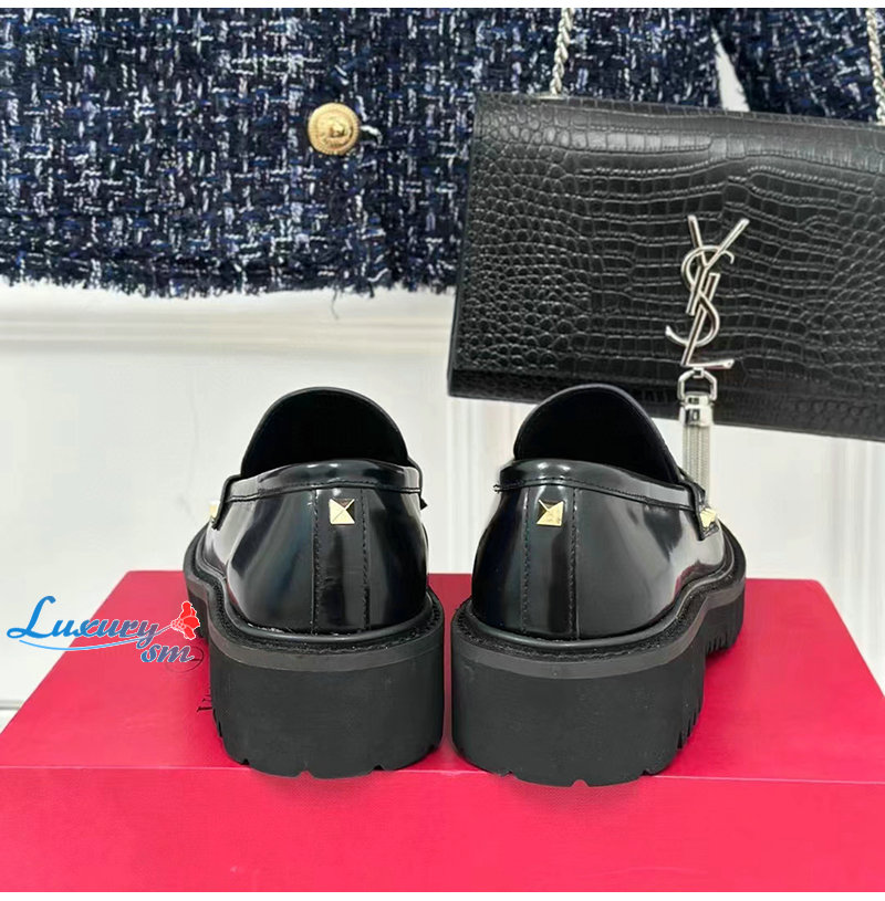 VALENTINO-3W0S0HW 발렌티노 블랙 락스터드 송아지 가죽 로퍼 여성용