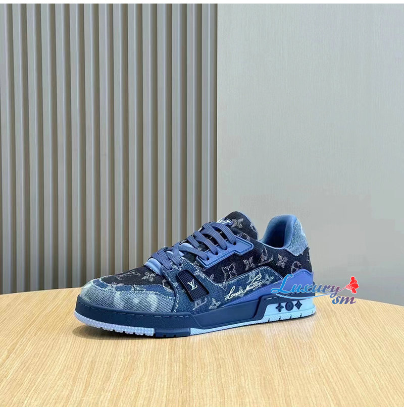 LOUIS VUITT**-1A9ZIE 루이비통 블루 모노그램 데님 LV 트레이너 스니커즈