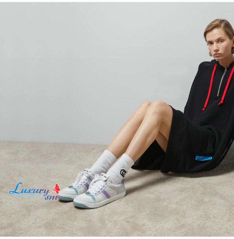 스니커즈는 측면의 웹 스트라이프와 구찌빈티지 구