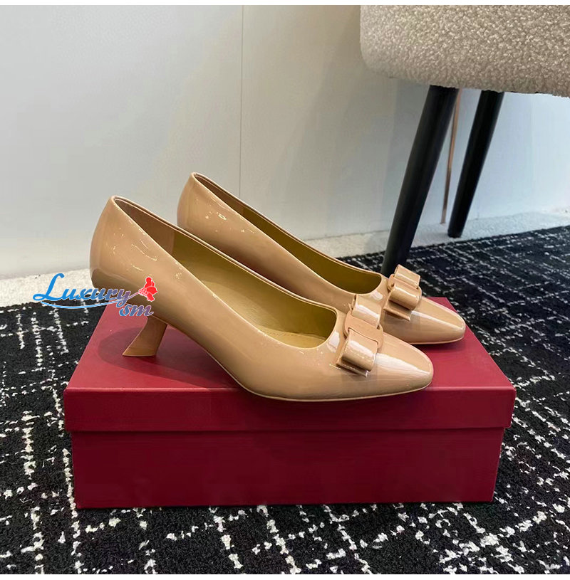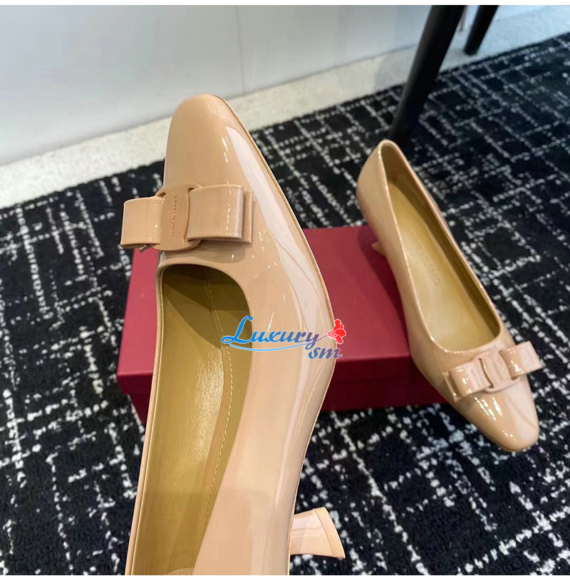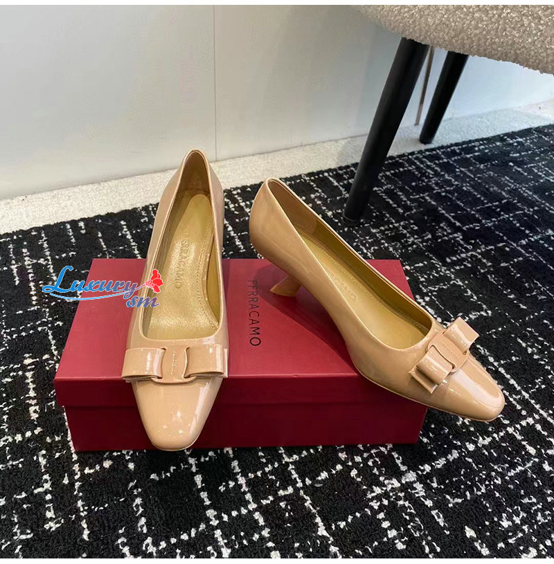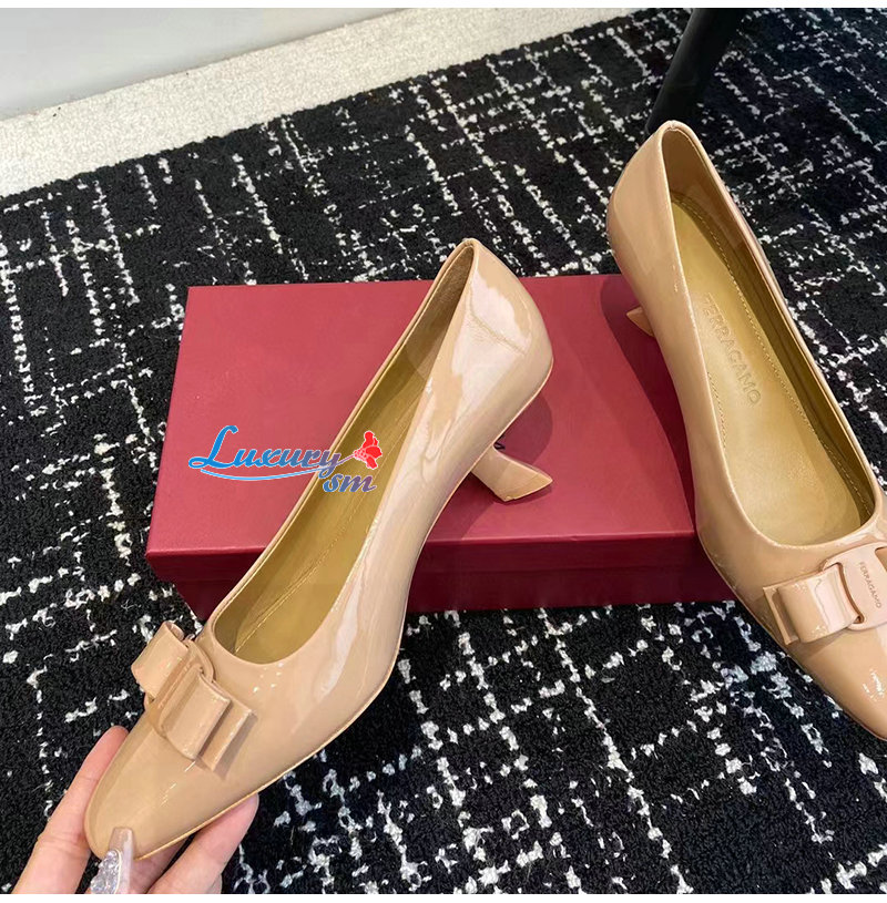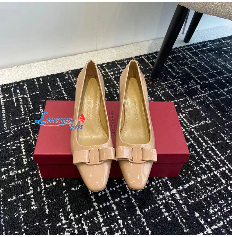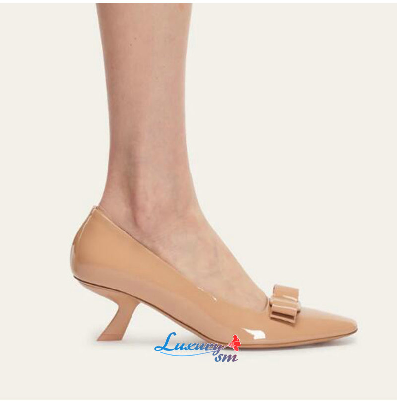 Ferragamo-01F594 페라가모 베이지 바라 보우 펌프스