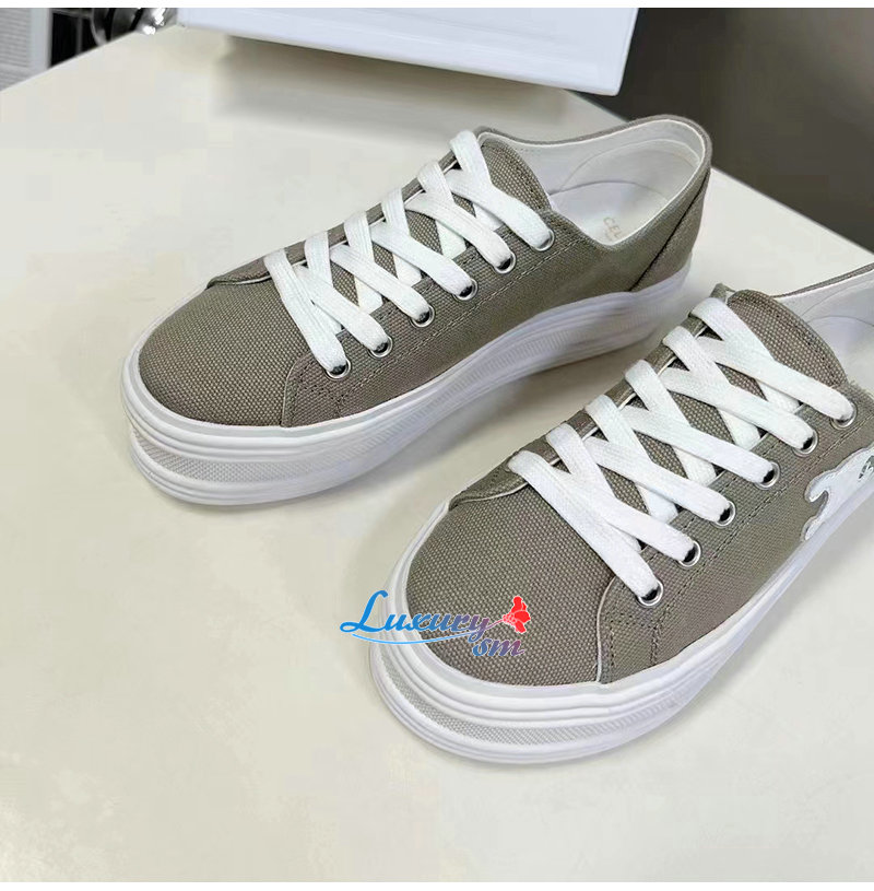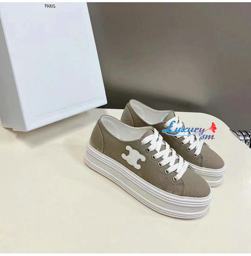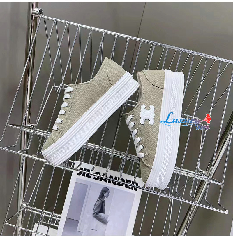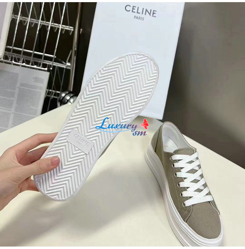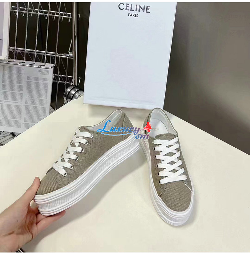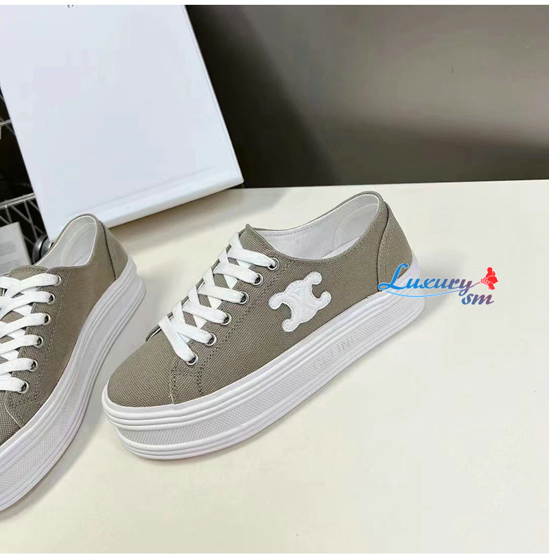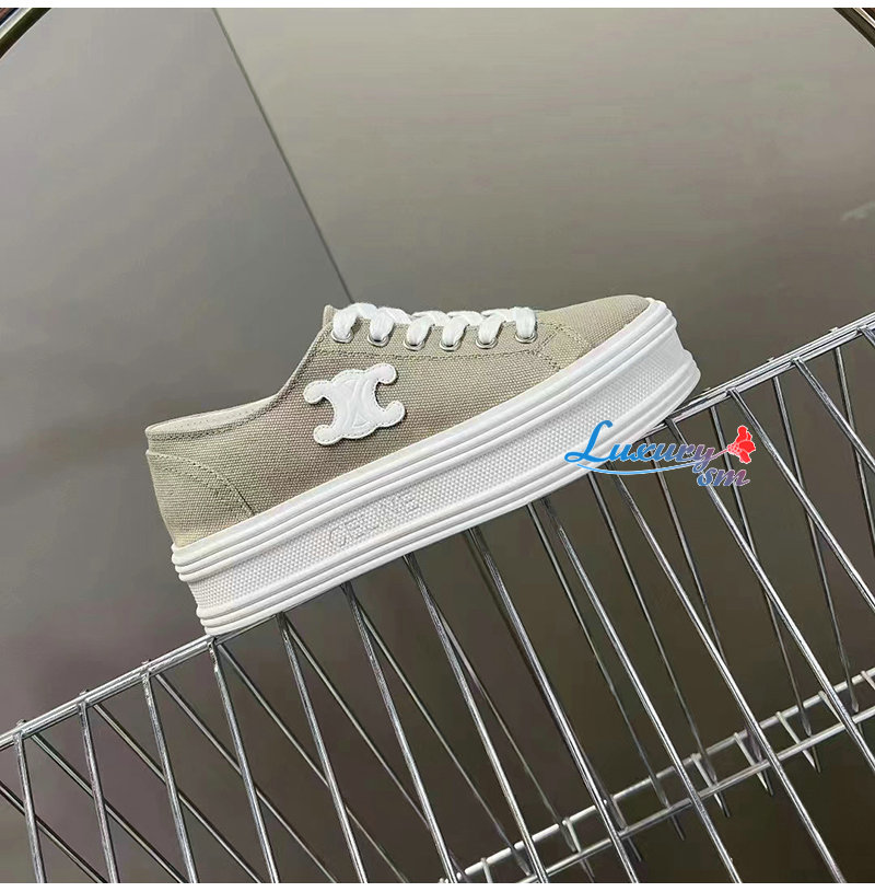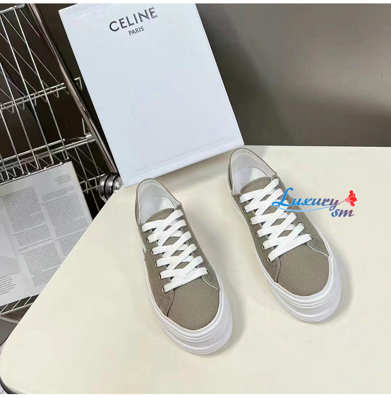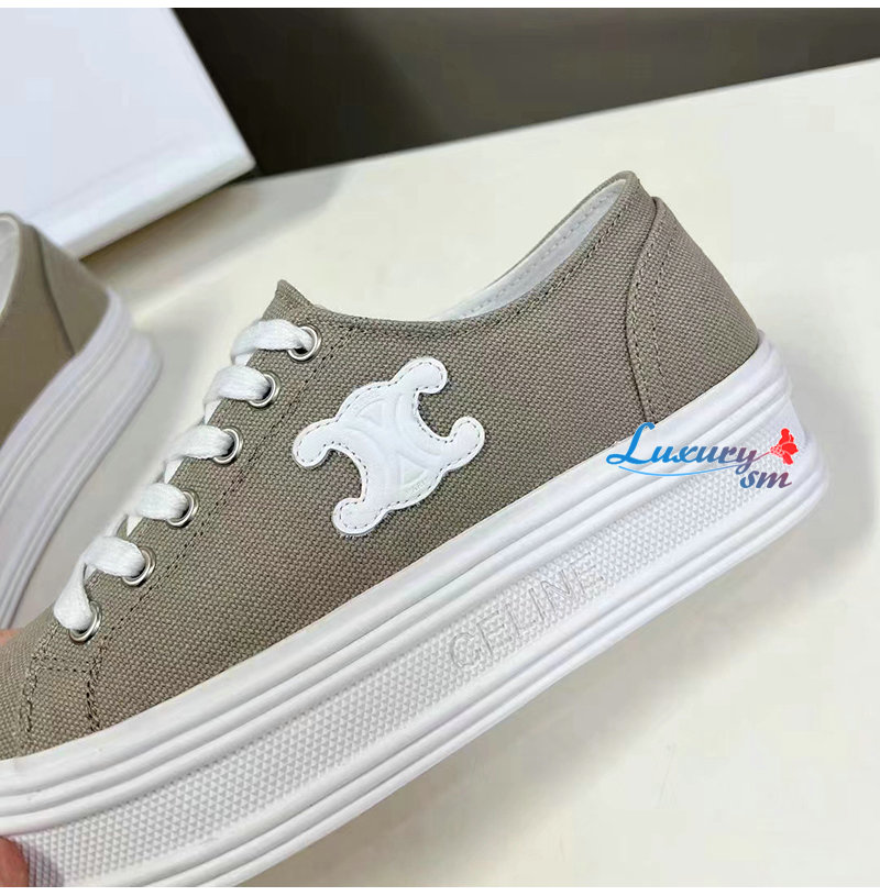 CELINE-358782 셀린느 그레이 트리옹프 패치 제인 레이스업 스니커즈 여성용