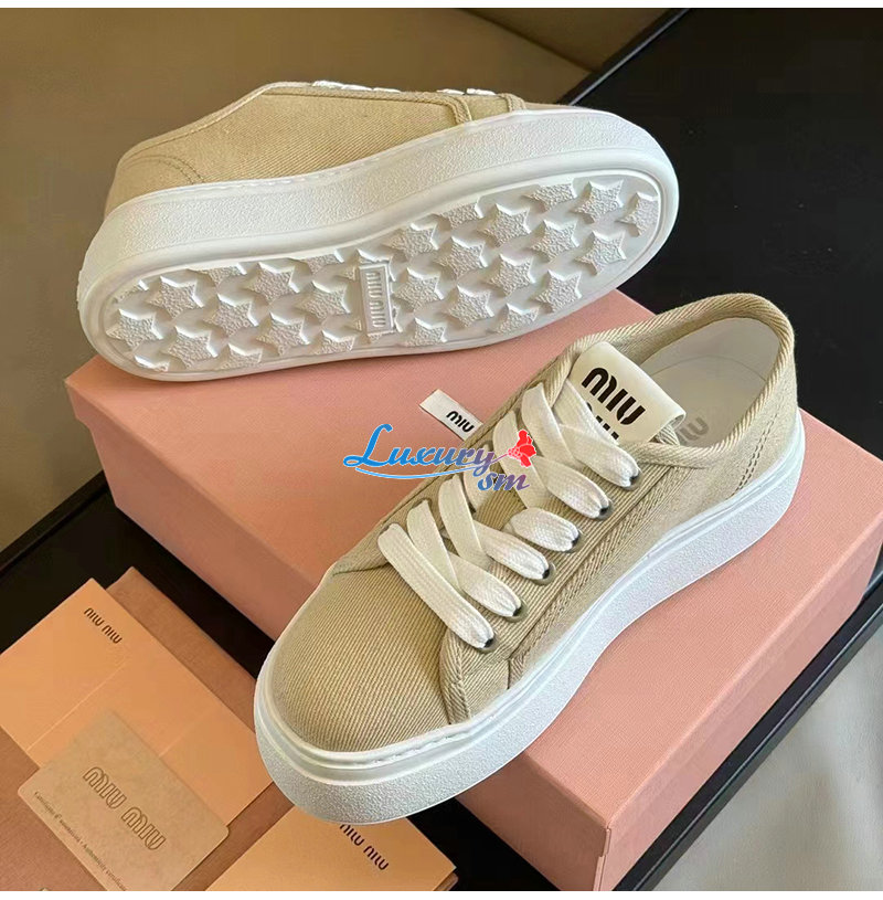 MIUMIU-5E889D 미우미우 베이지 데님 스니커즈 여성용