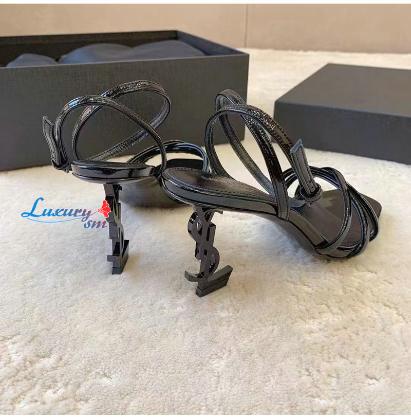 SAINT LAURENT-782840 생 로랑 블랙 글레이즈드 가죽 OPYUM 샌들