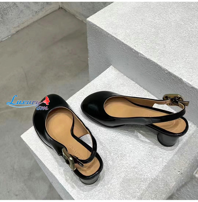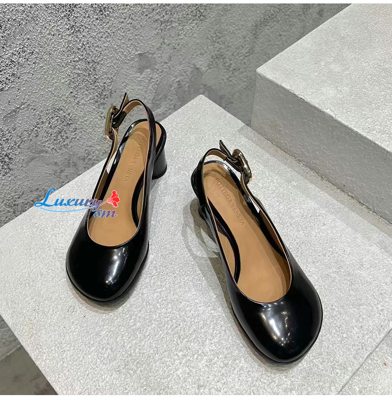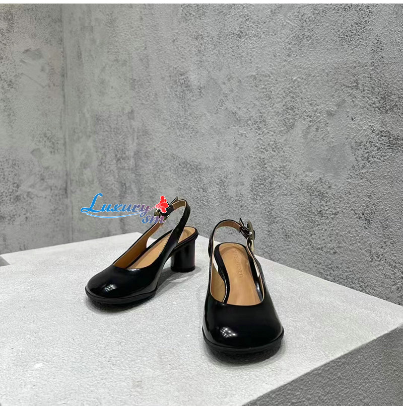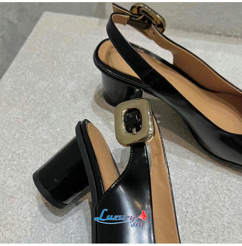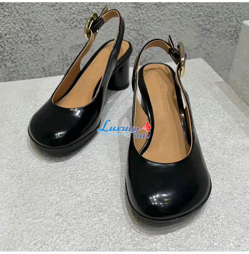 보이는 슬링백 펌프스. 러버 질감의 양가죽소재.