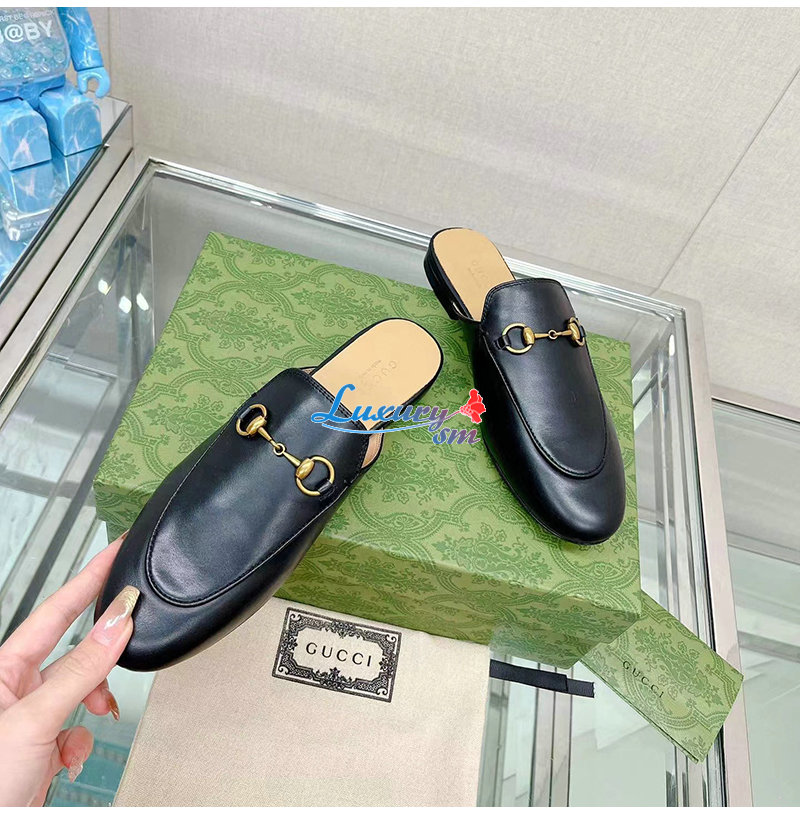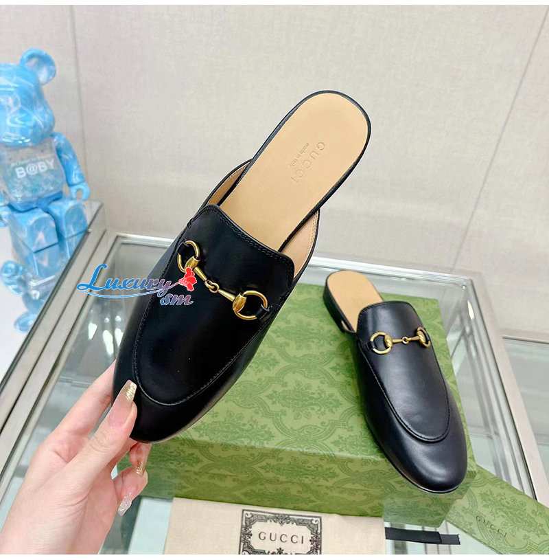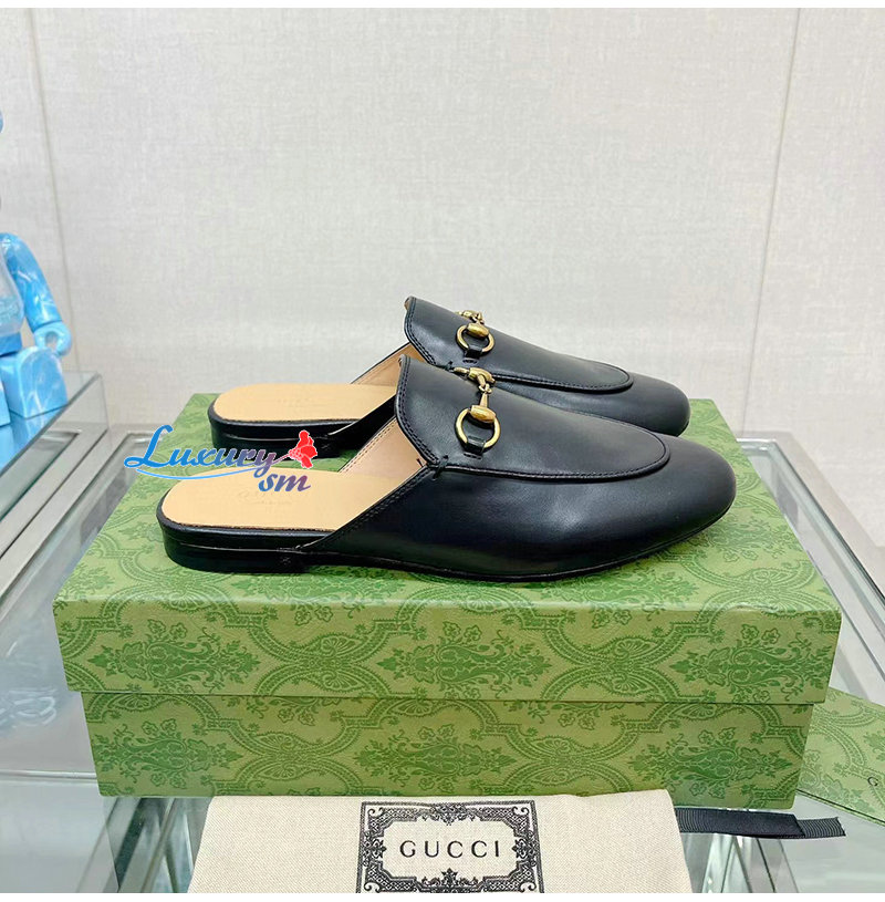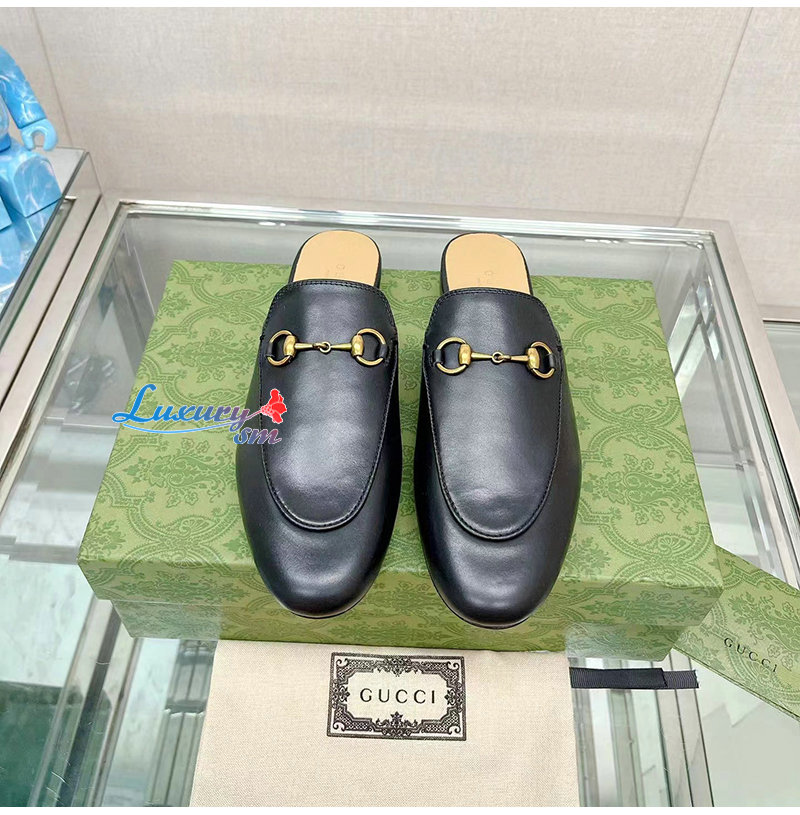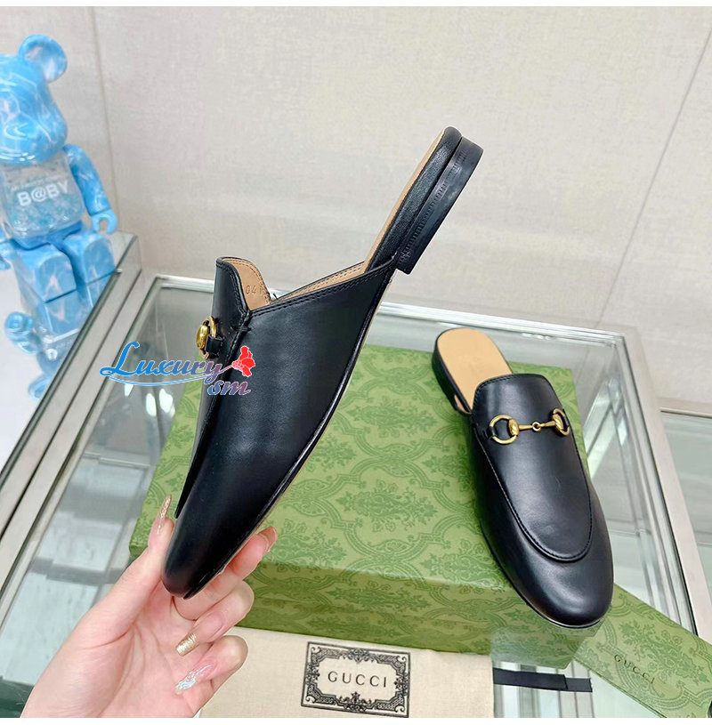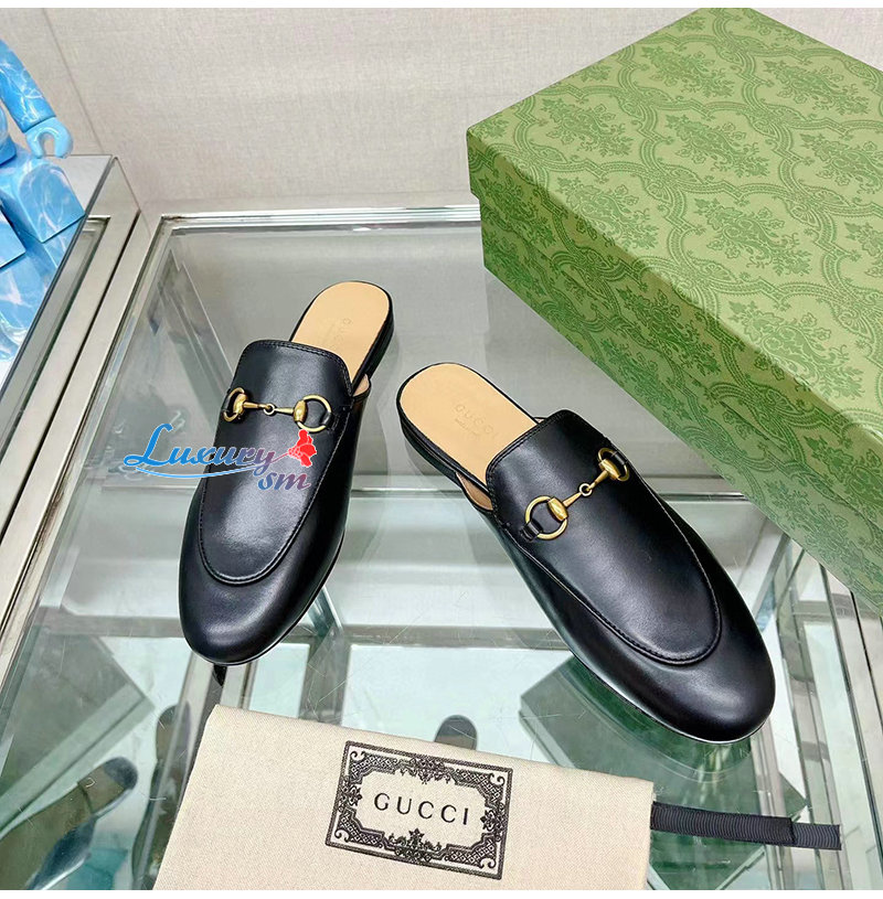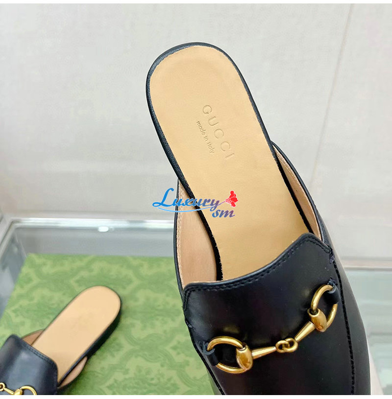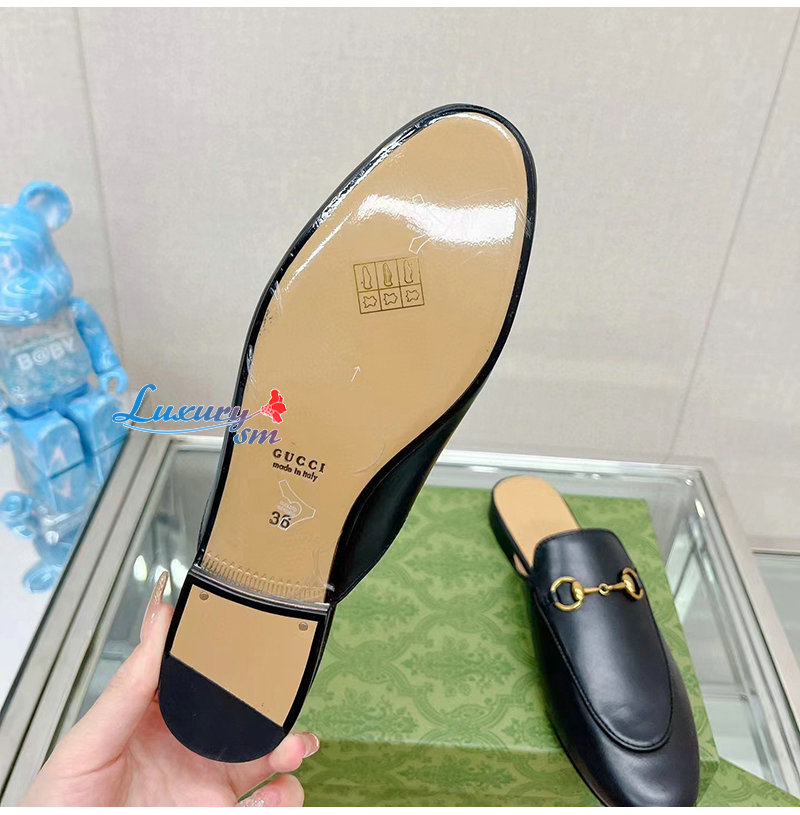 GUCCI-426219 1000 구찌 블랙 킹스 홀스빗 레더 슬리퍼 남여공용