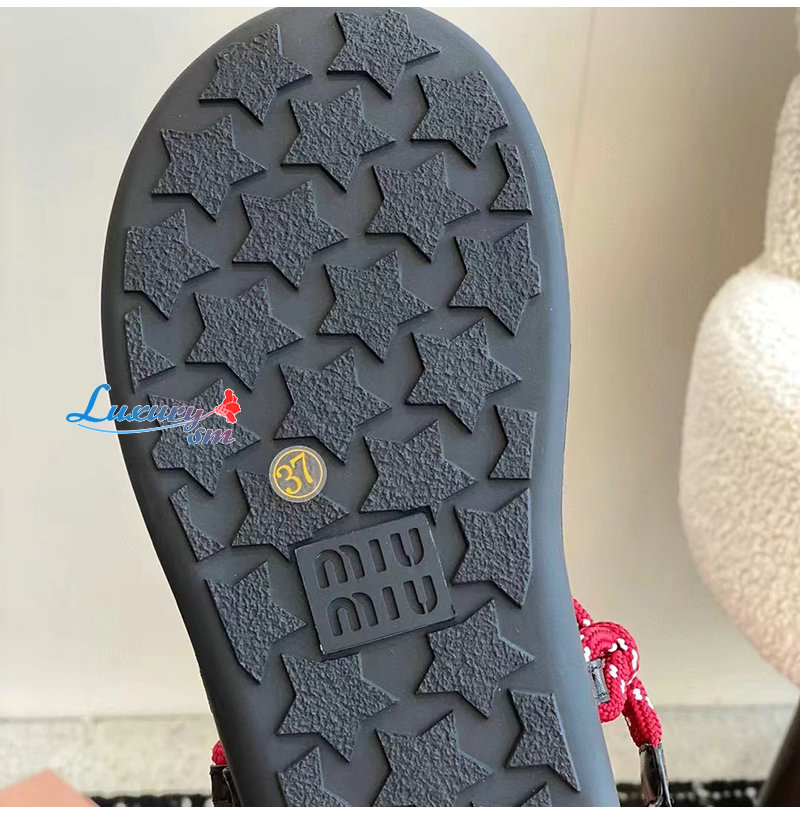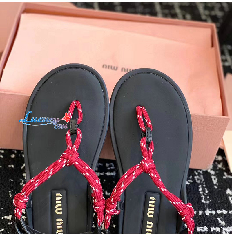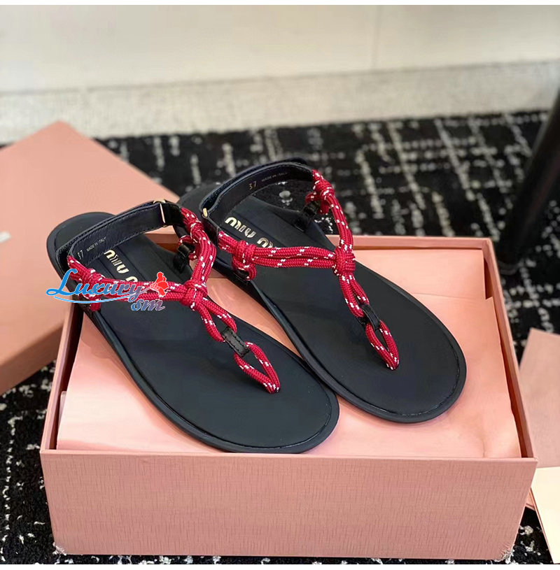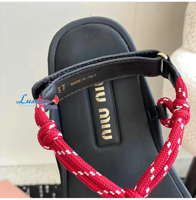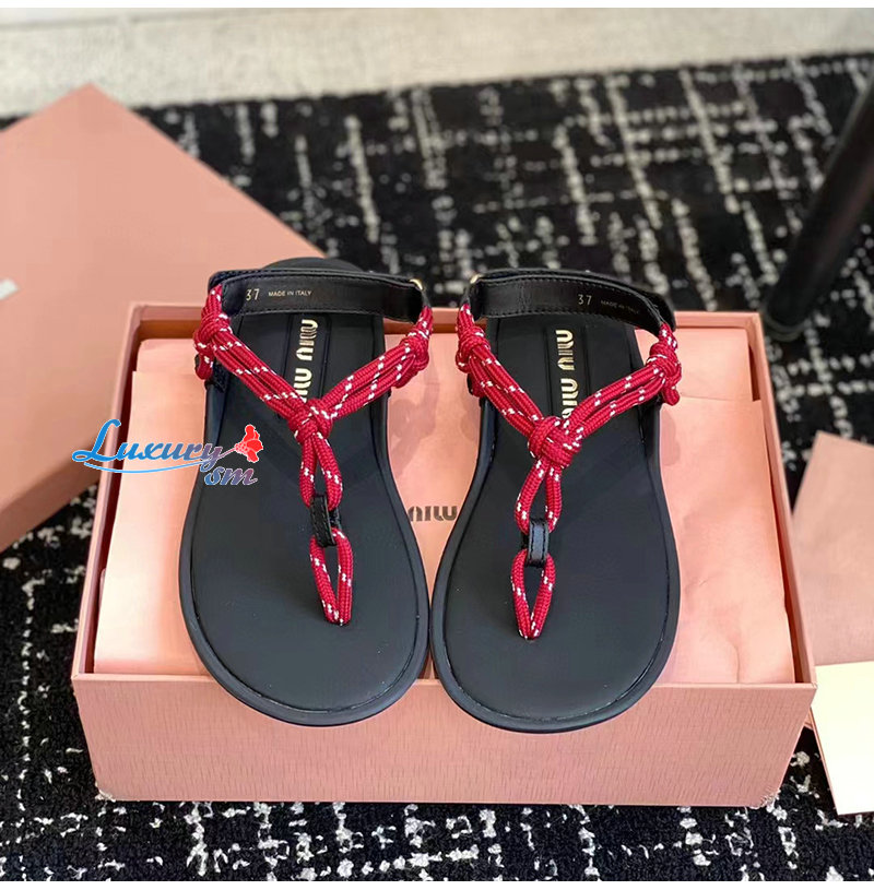 MIUMIU-5Y184E 미우미우 레드 Riviere 코드 가죽 샌들 여성용