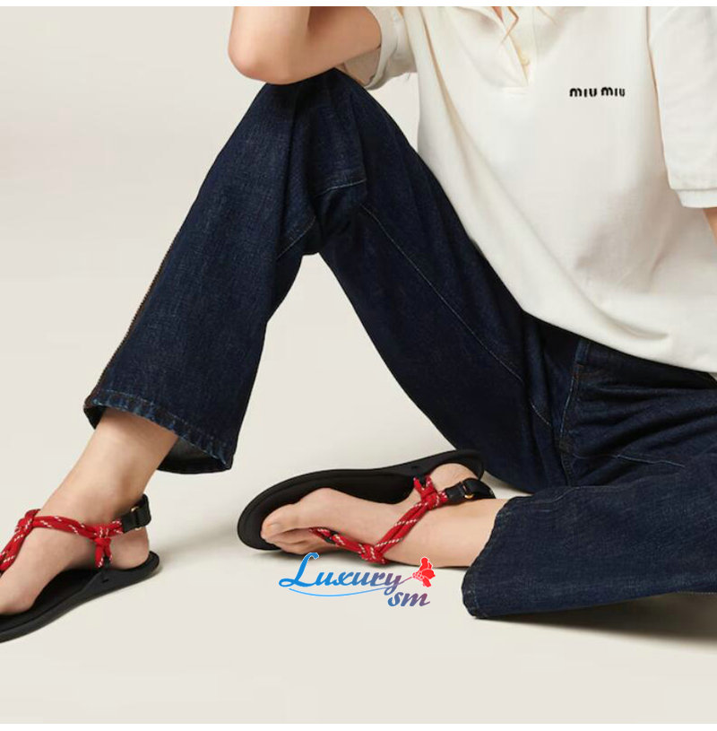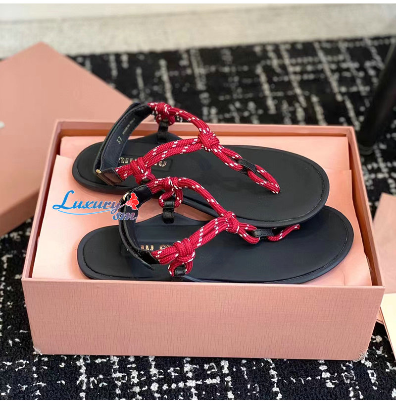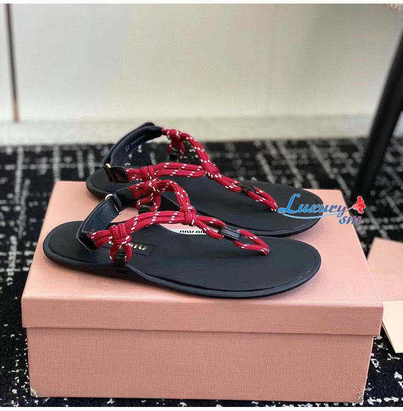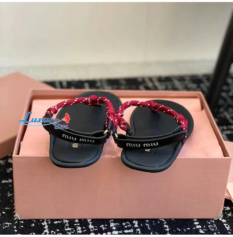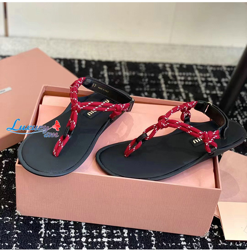 MIUMIU-5Y184E 미우미우 레드 Riviere 코드 가죽 샌들 여성용