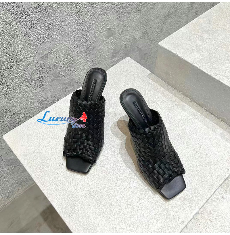 BOTTEGA VENETA-754143 보테가 베네타 블랙 램스킨 놋 뮬
