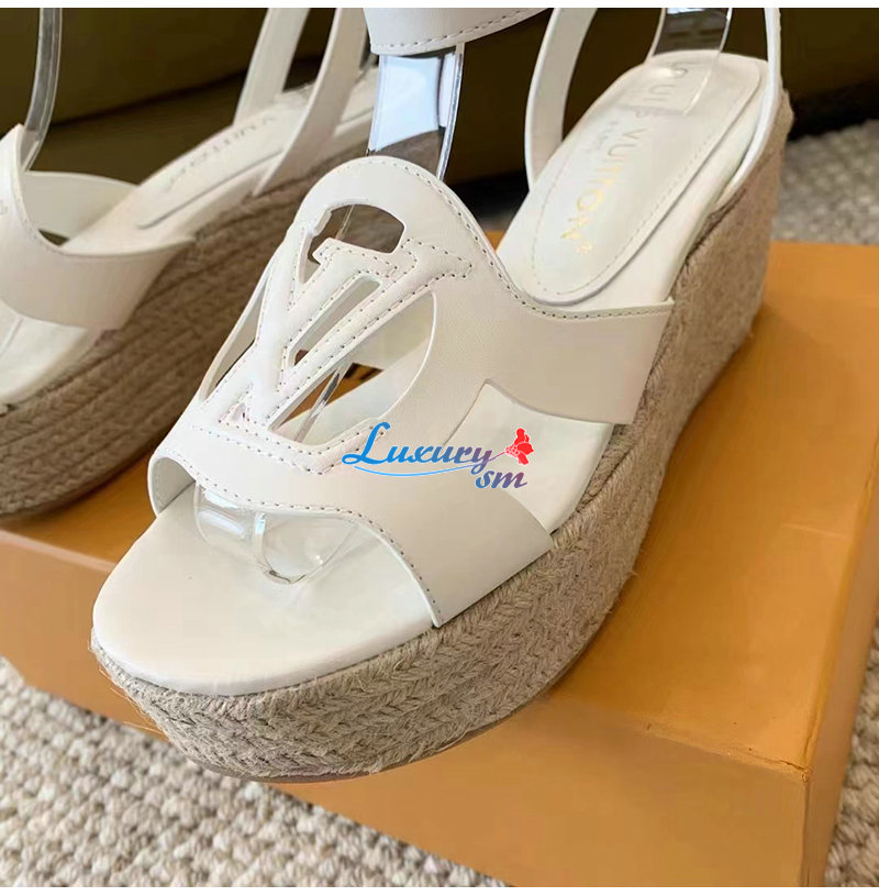 우면서도 세련된 스타일의 LV 이솔라 웨지 샌들.